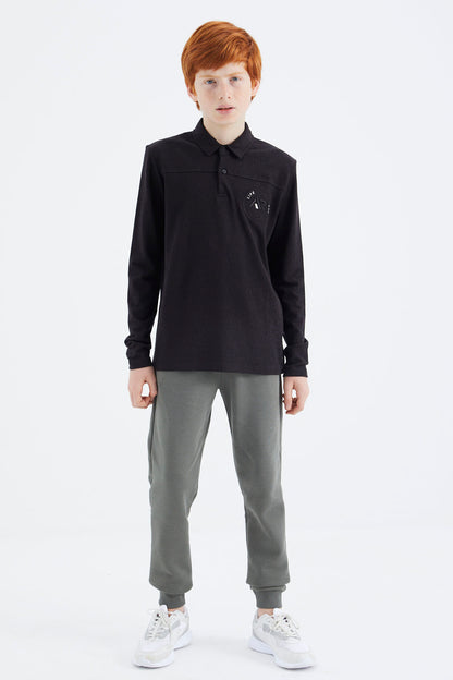 Black Polo Collar Boys T-Shirt - 11172