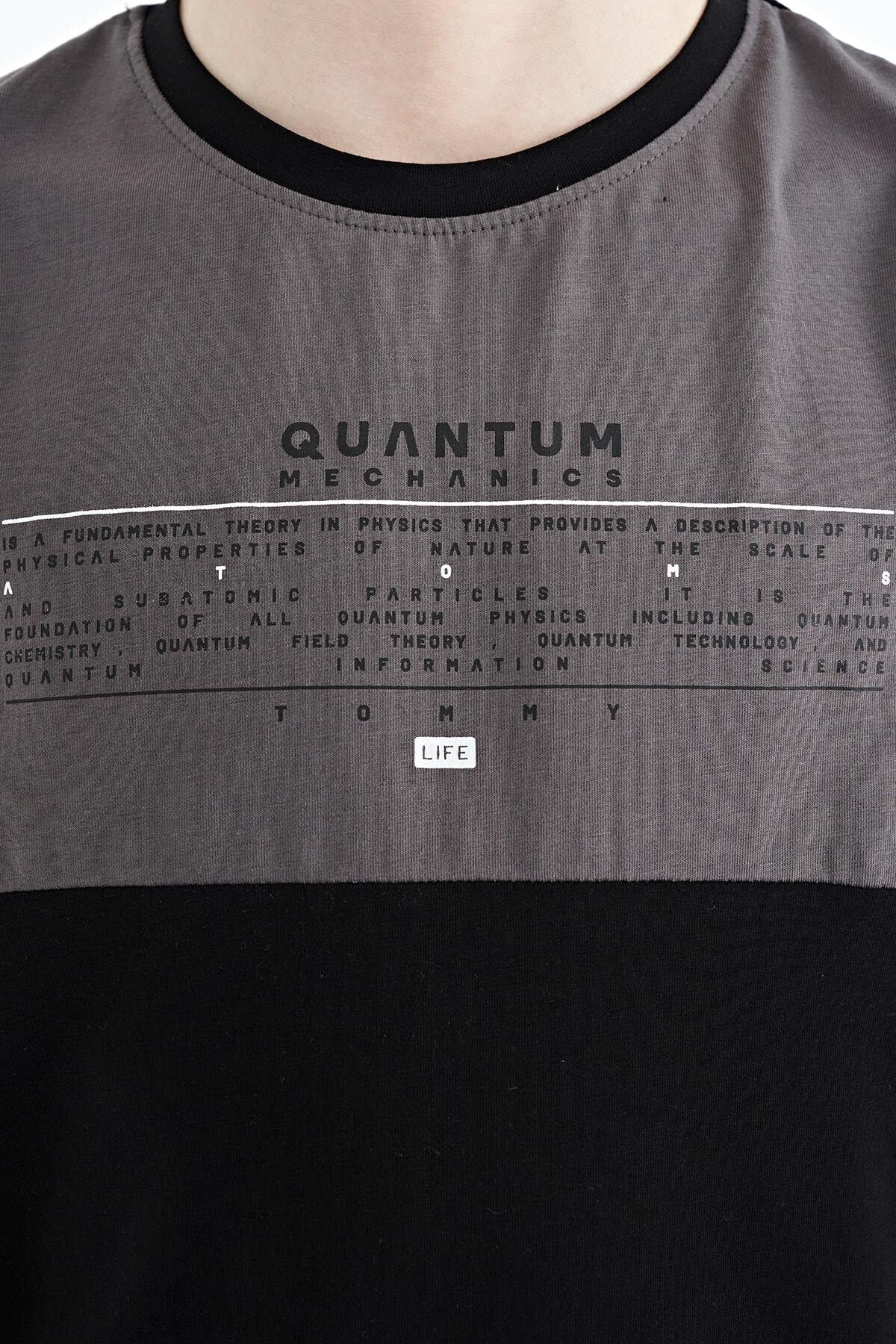 Black Print Color Block Standard Fit O Collar Boys T-Shirt - 11134