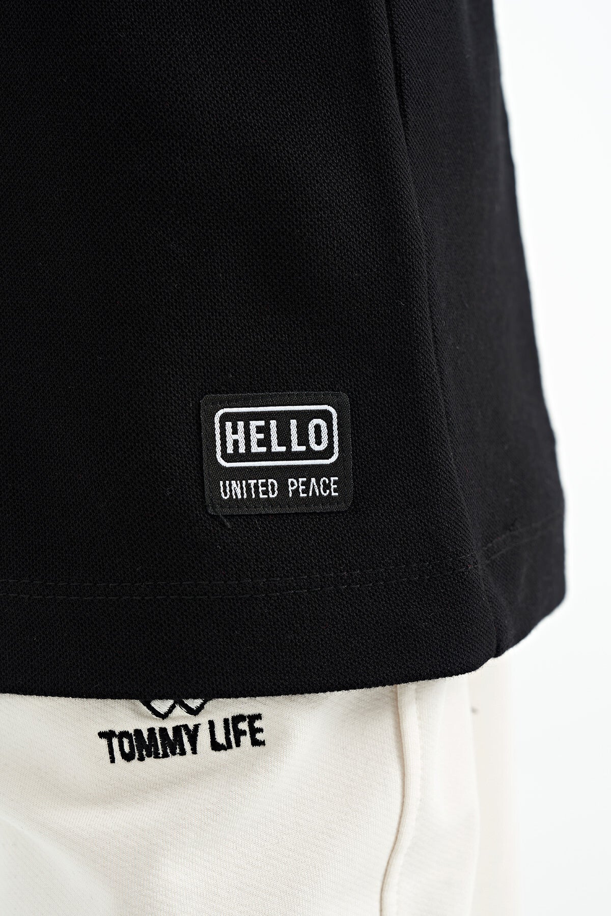Black Print Detailed O Collar Standard Fit Boys' T-Shirt - 11145