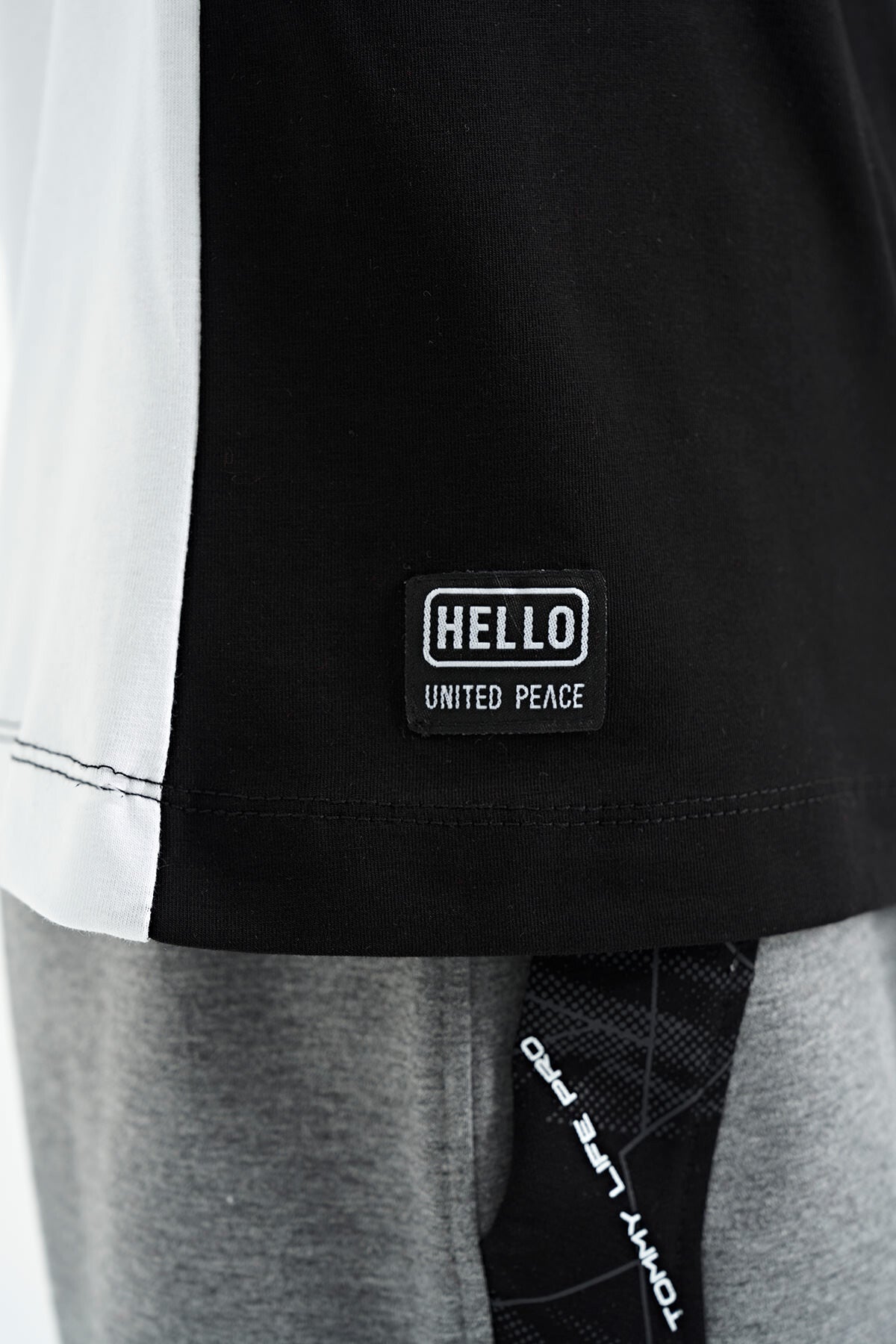 Black Print Detailed O Collar Standard Fit Boys T-Shirt - 11157