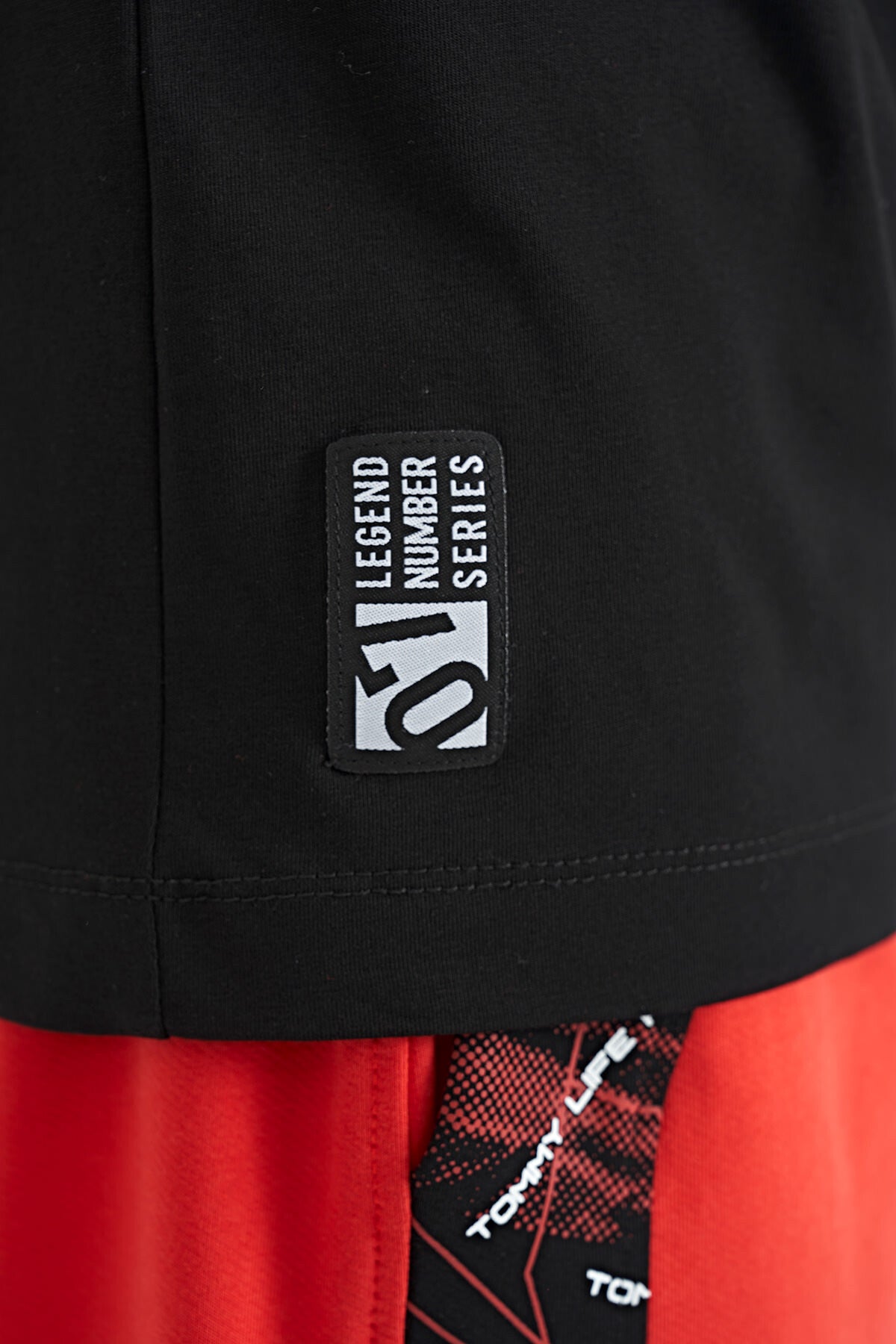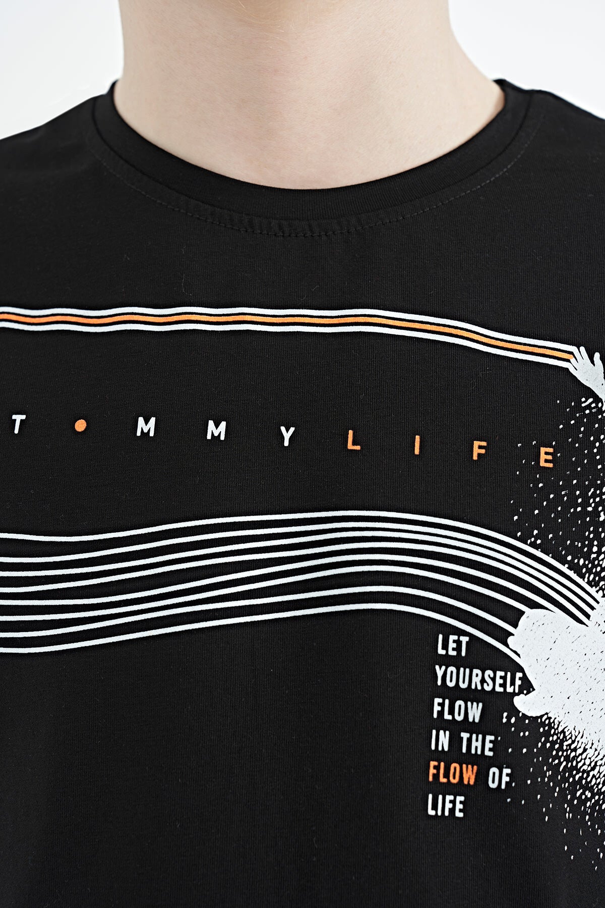 Black Print Detailed Standard Mold O Collar Boys T-Shirt - 11133