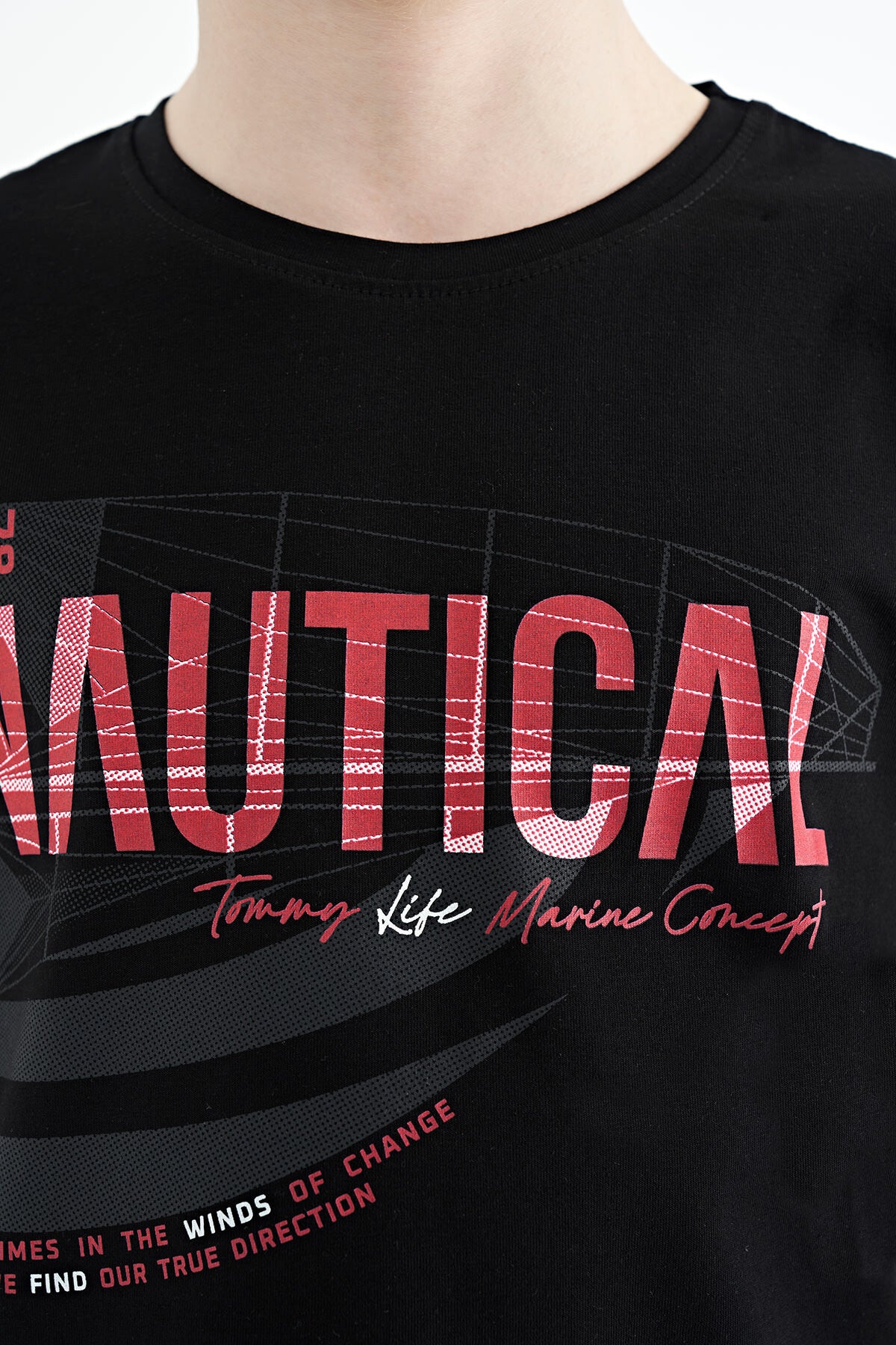 Black Print O Collar Standard Fit Men's Boys T-Shirt - 11100