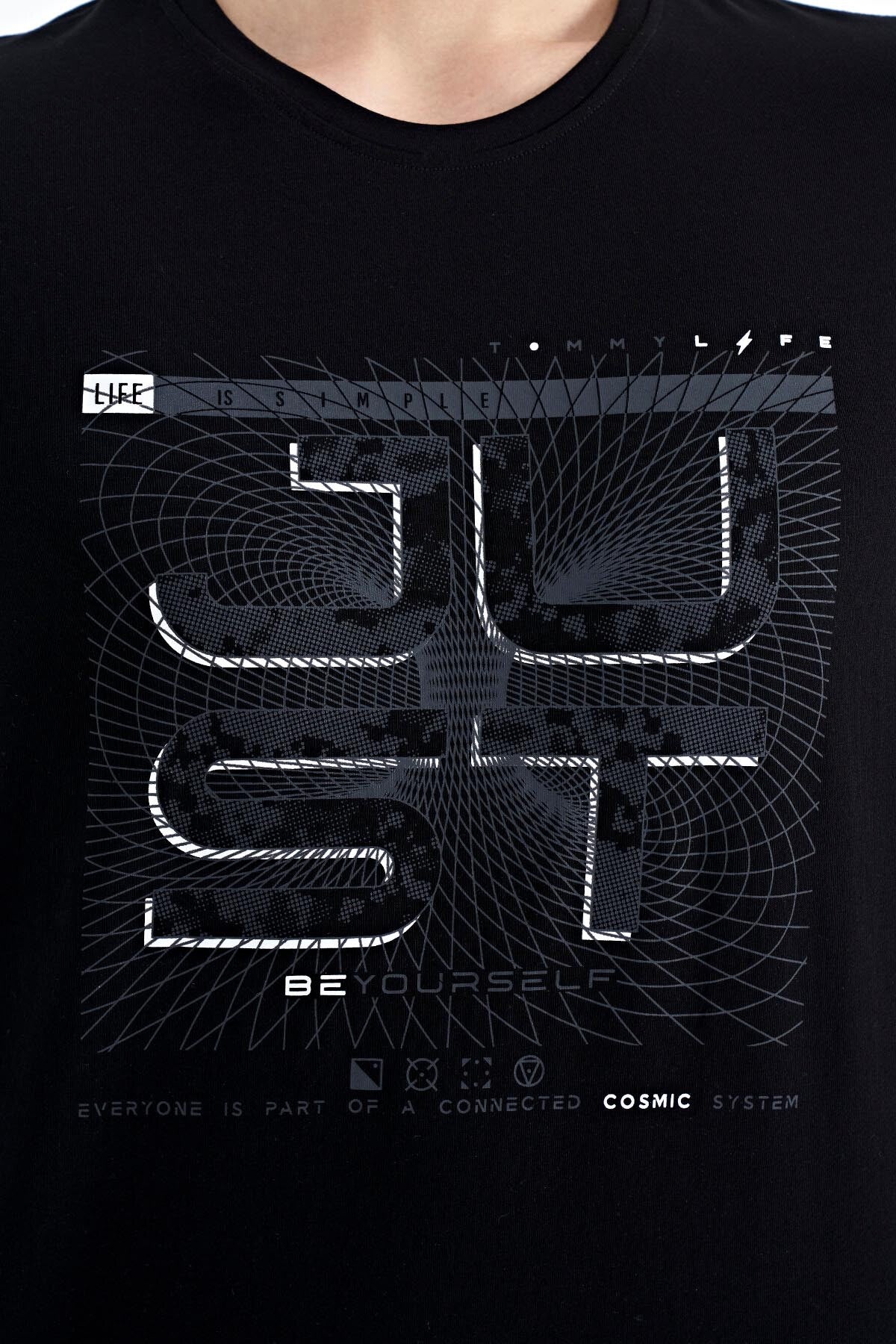 Black Print O Collar Standard Fit Men's T-shirt - 88170
