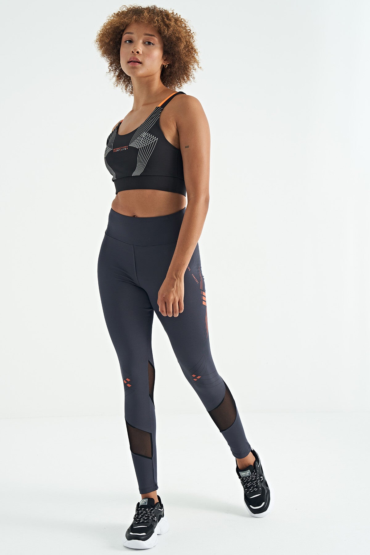 Black Printed Cross Back Detailed Diver Fabric Slim Fit Women's Bustier - 97273