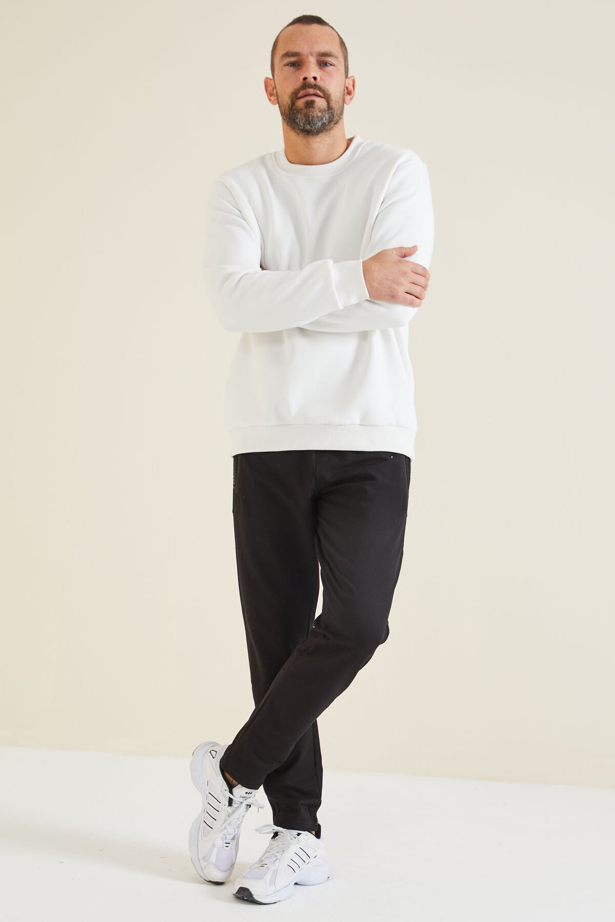 Black Printed Double Striped Slim Fit Jogger Men's Tracksuit Bottom - 84780