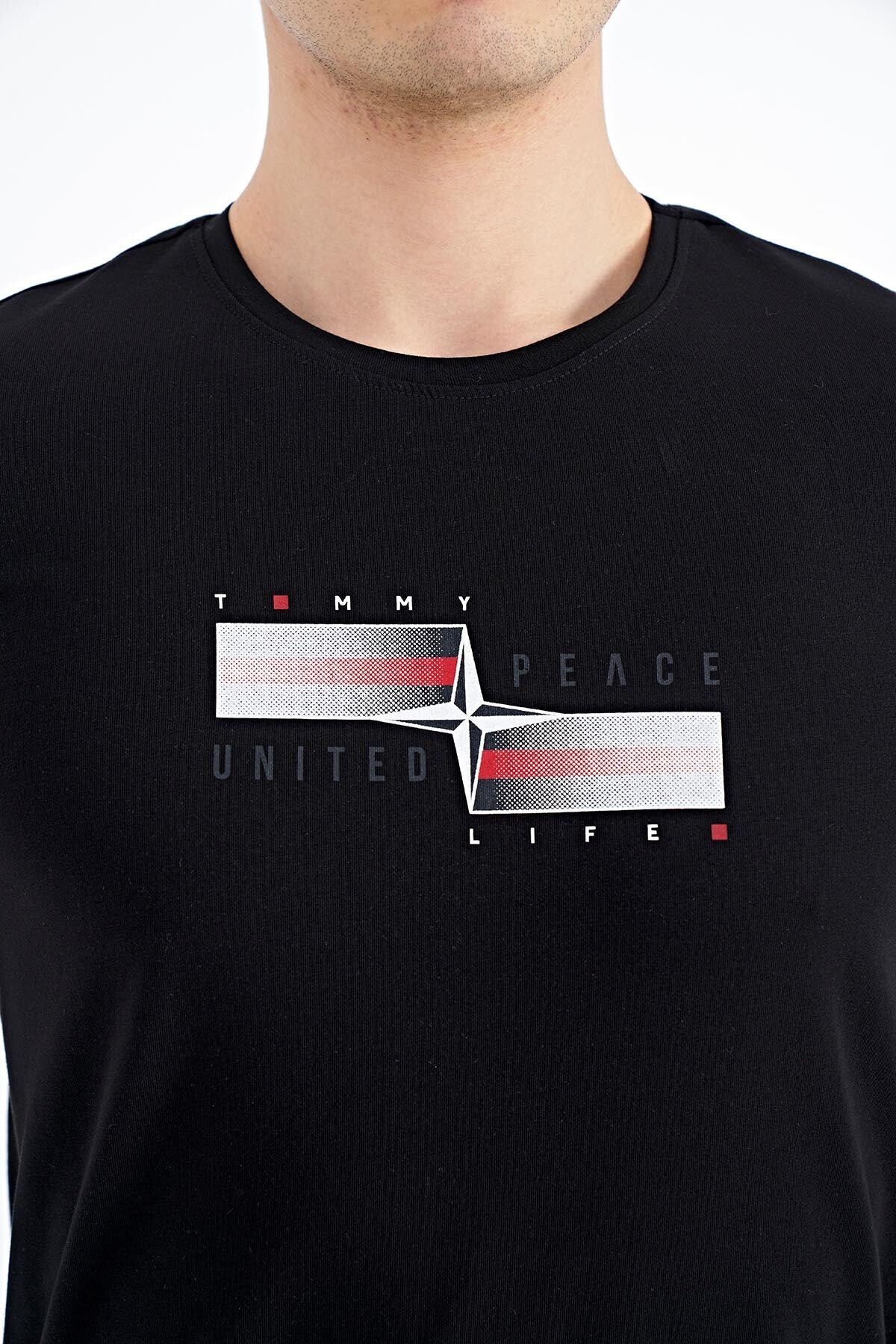 Black Printed Pattern Standard Cut Men's T-shirt - 88215