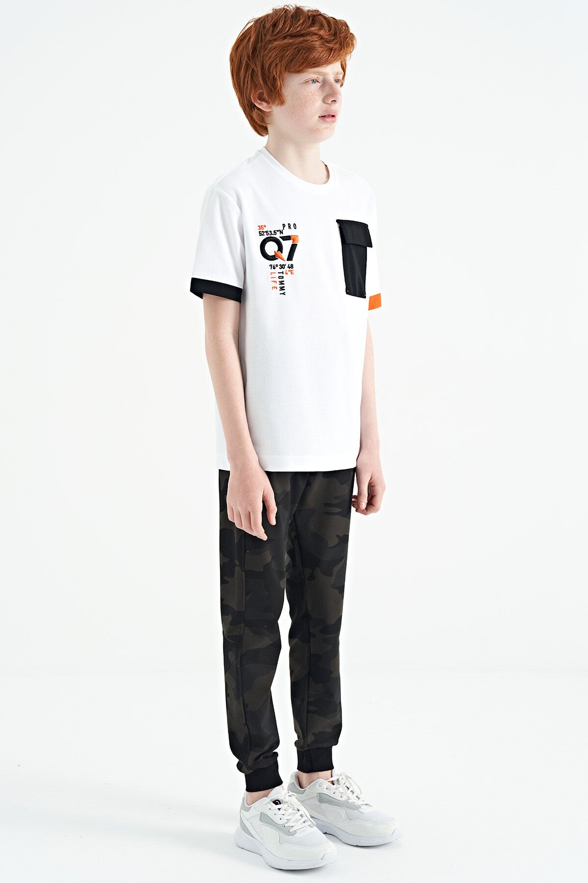 Black Shadow Camouflage Print Detailed Standard Cut Jogger Boys Tracksuit Bottom - 11096