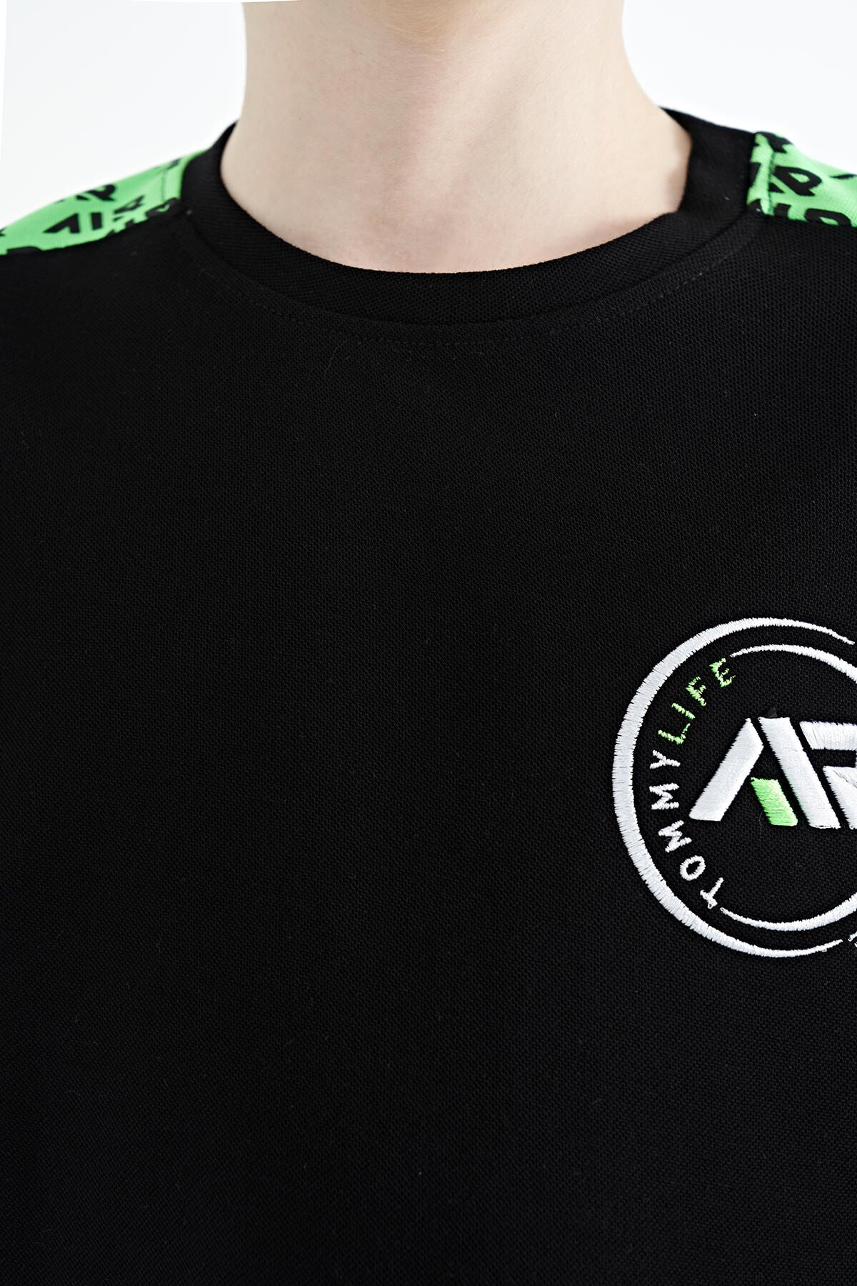 Black Shoulder Print Detailed Standard Fit O Collar Boys T-Shirt - 11121