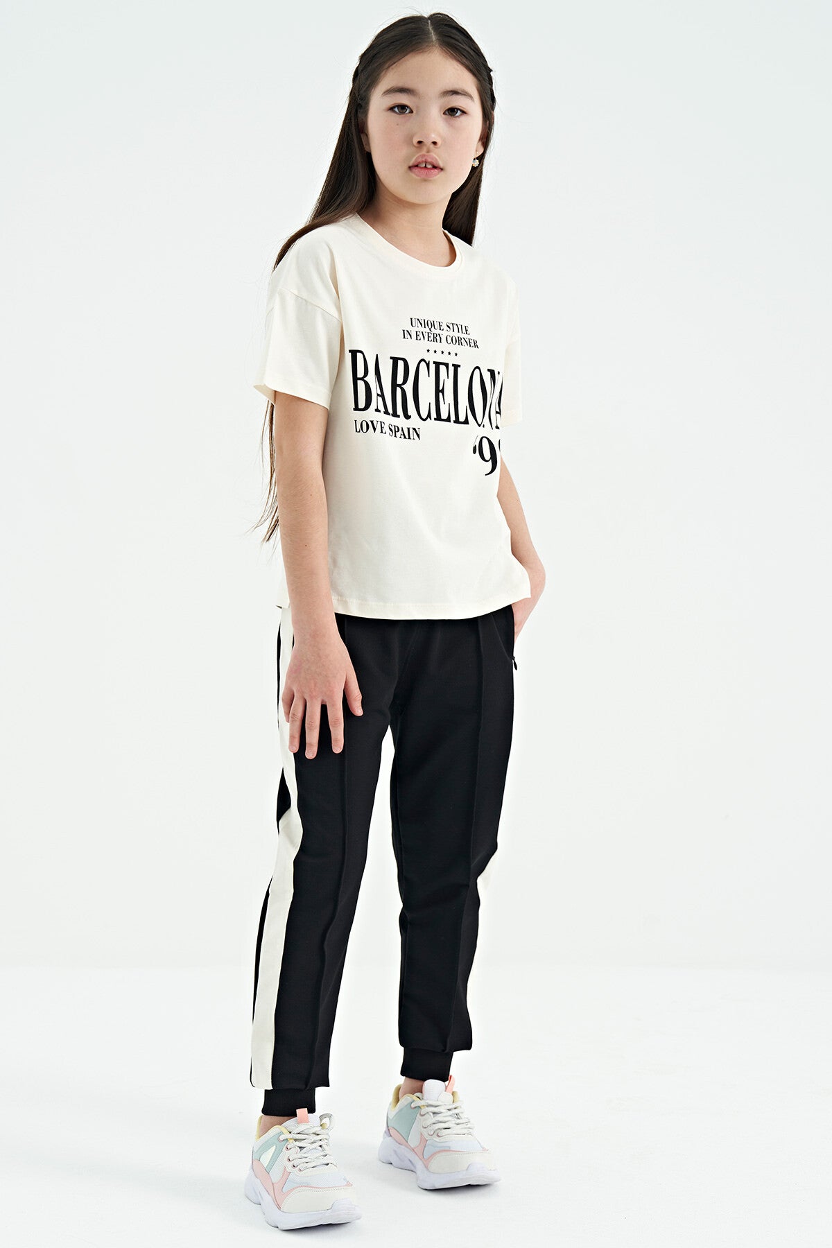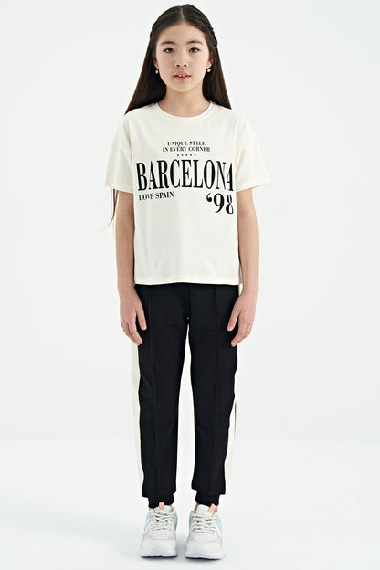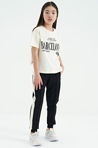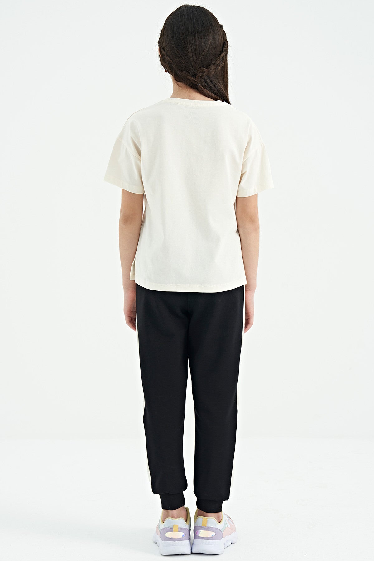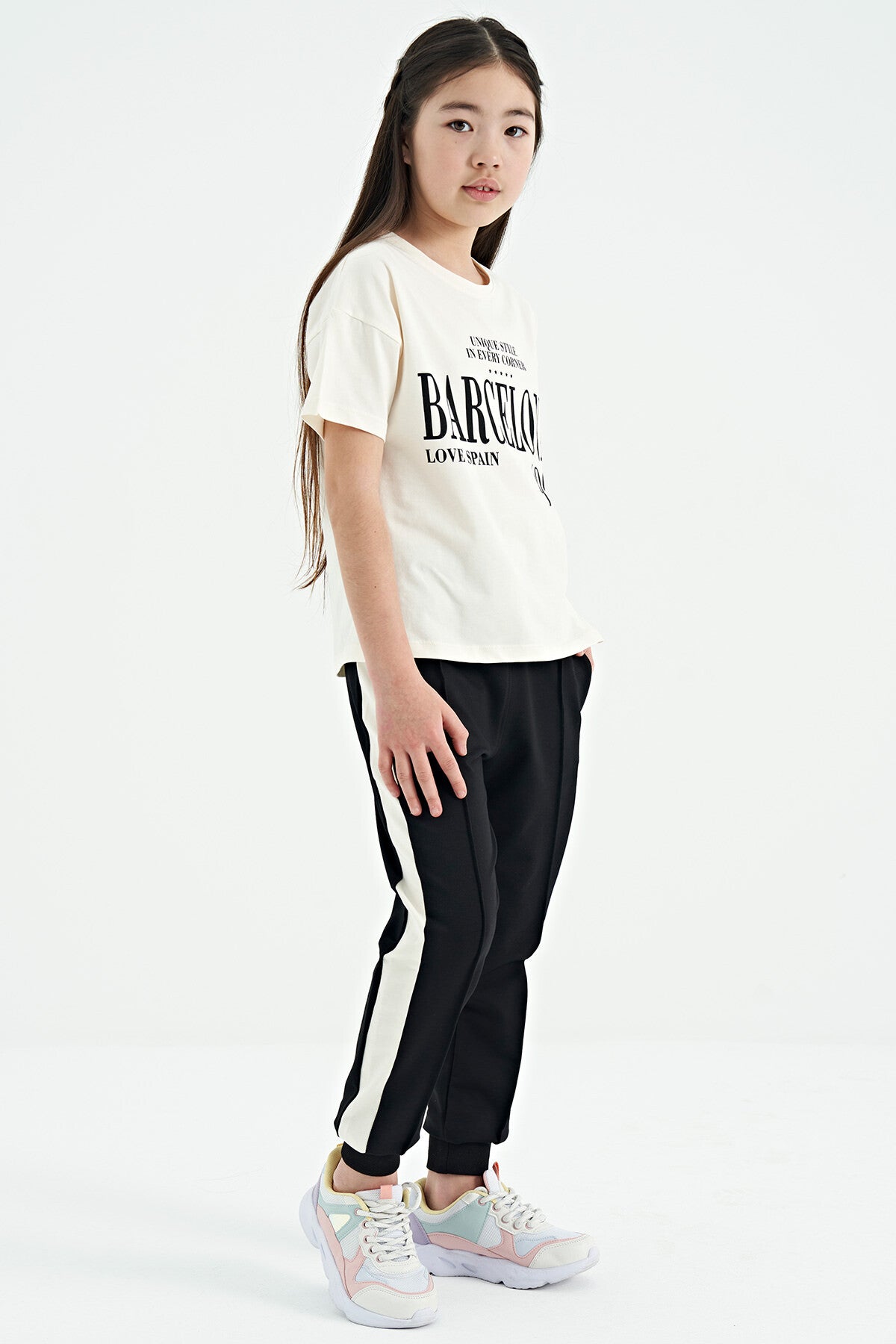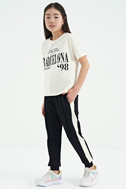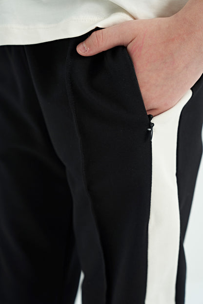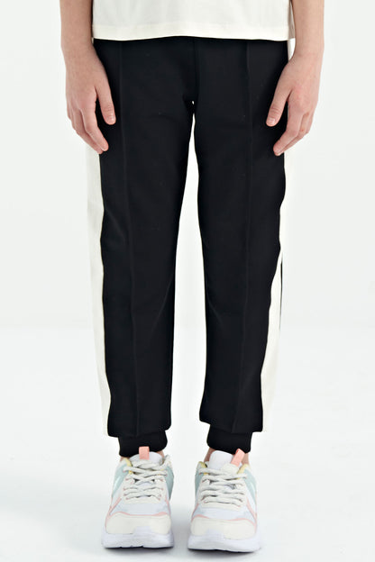 Black Side Striped Hidden Zipper Pocket Detailed Jogger Girls Tracksuit Bottom - 75122