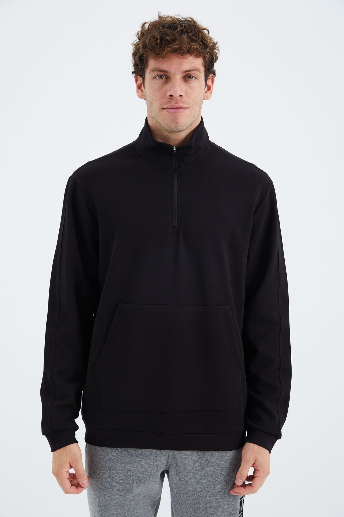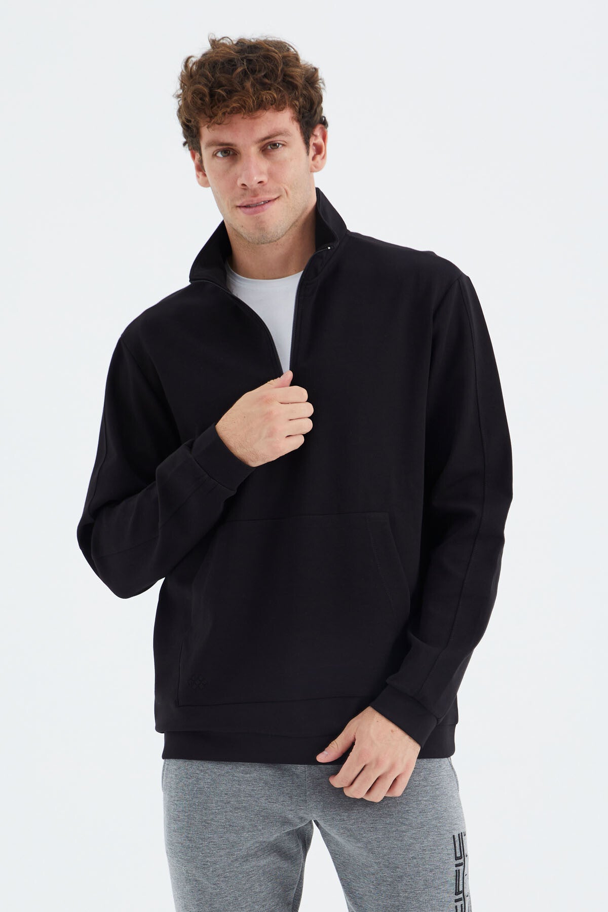 Black Stand Collar Half Zippered Pocket Detailed Men's Sweatshirt - 88278