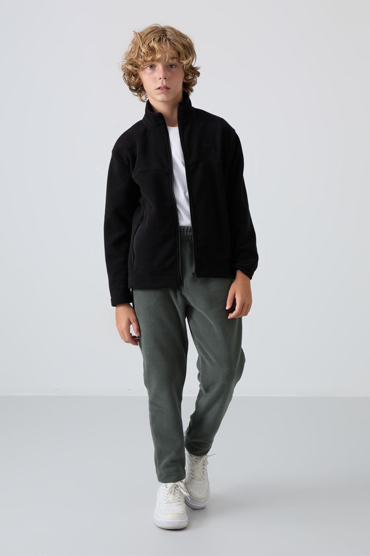 Black Thick Soft Textured Standard Fit Embroidered Fleece Boys' Sweatshirt - 11223