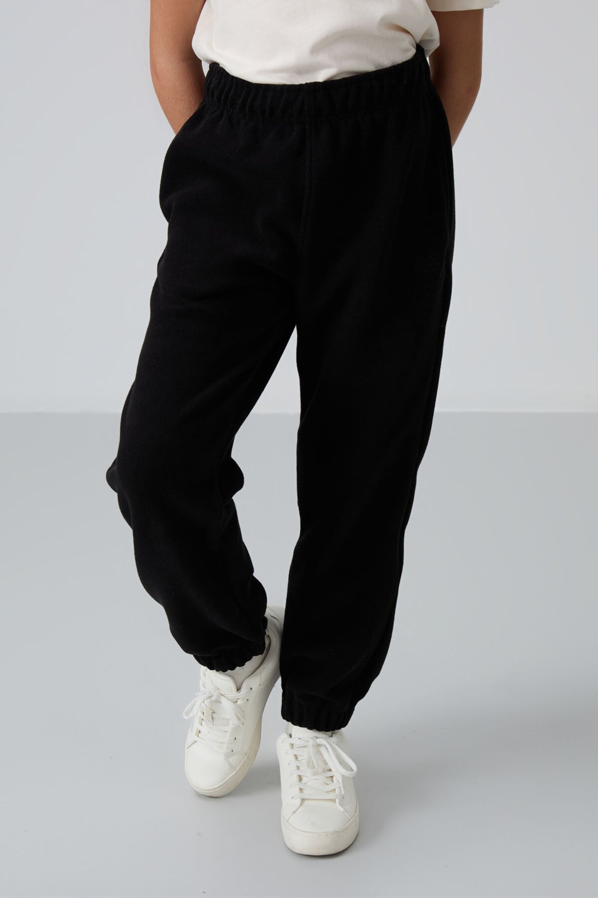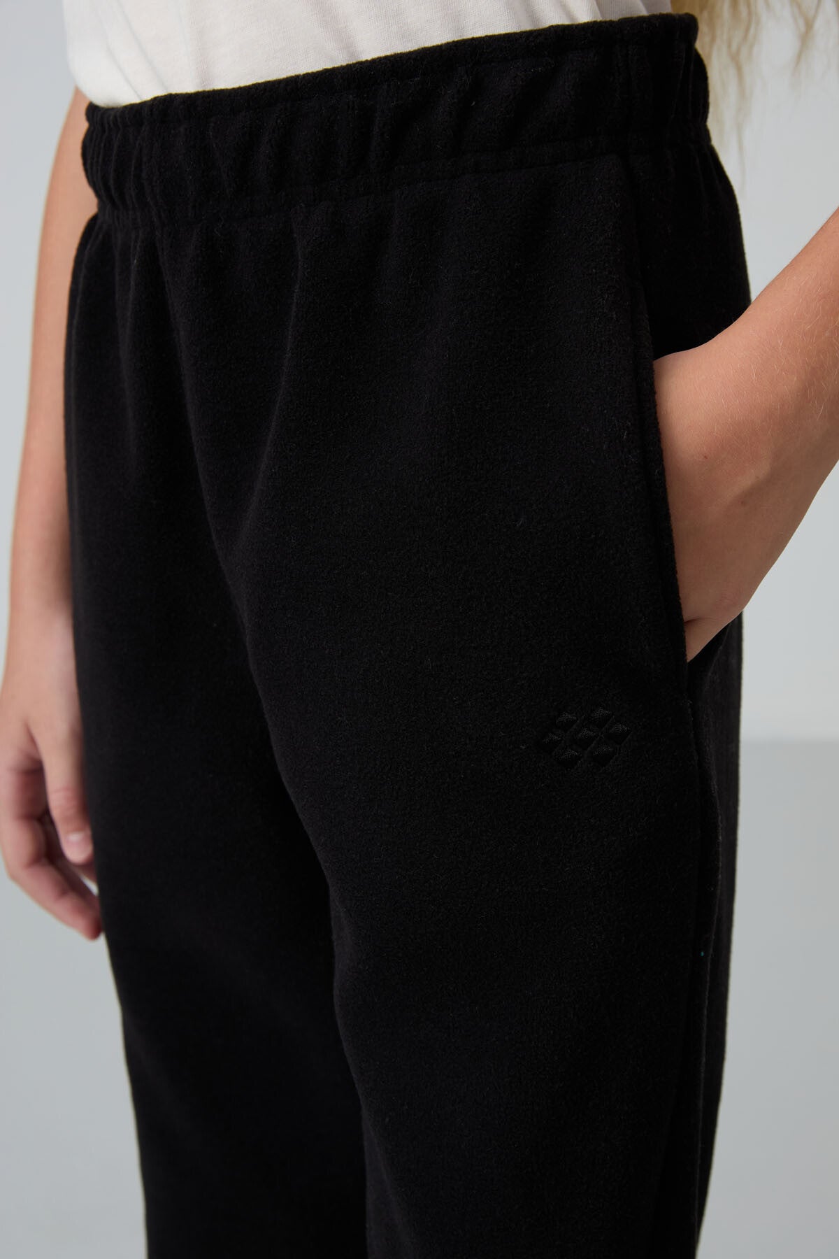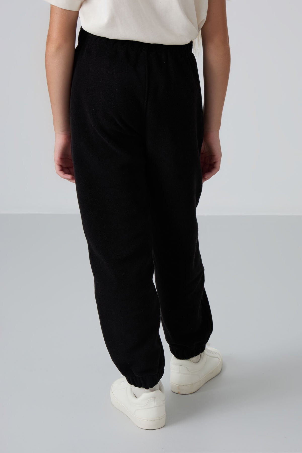 Black Thick Soft Textured Standard Fit Embroidered Fleece Girls' Tracksuit Bottom - 75155