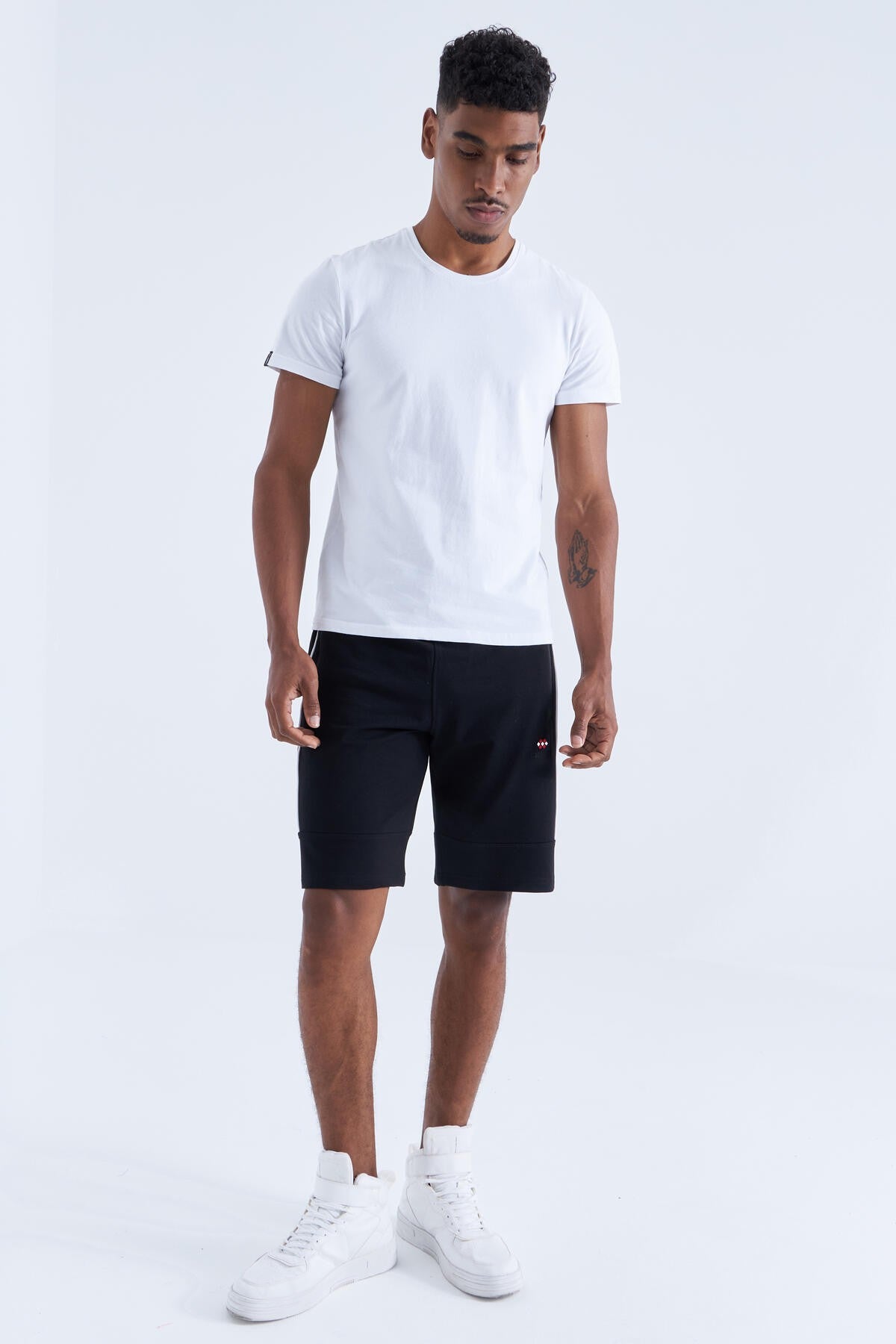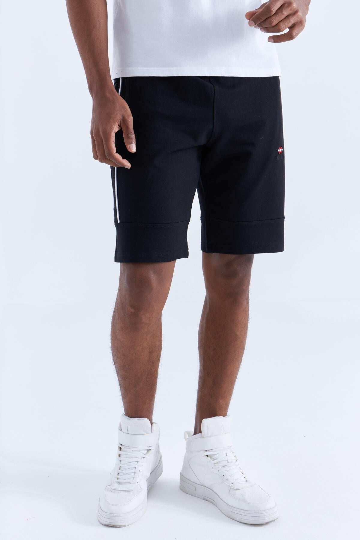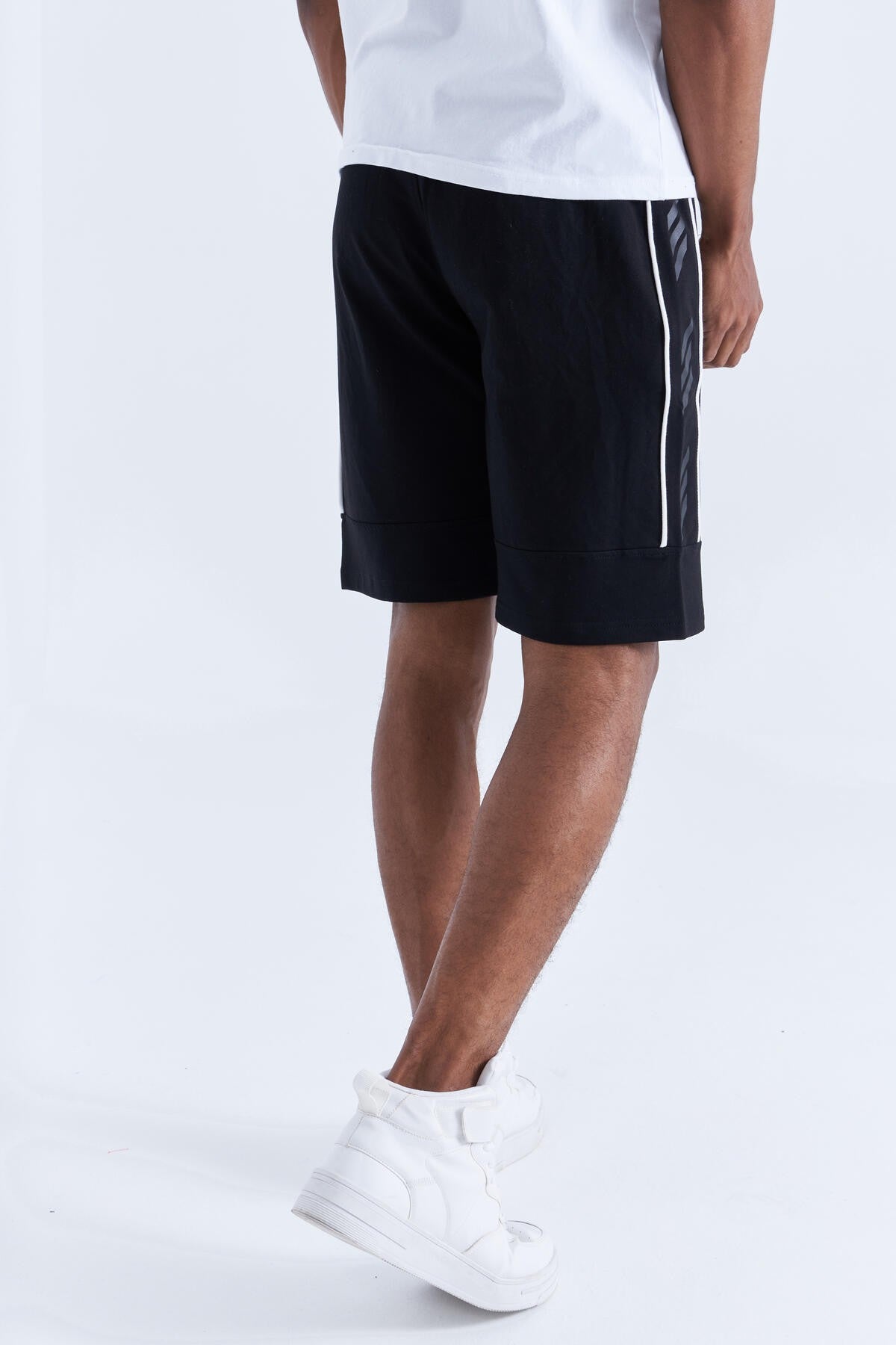 Black - White Side Striped Standard Fit Men's Shorts - 81148