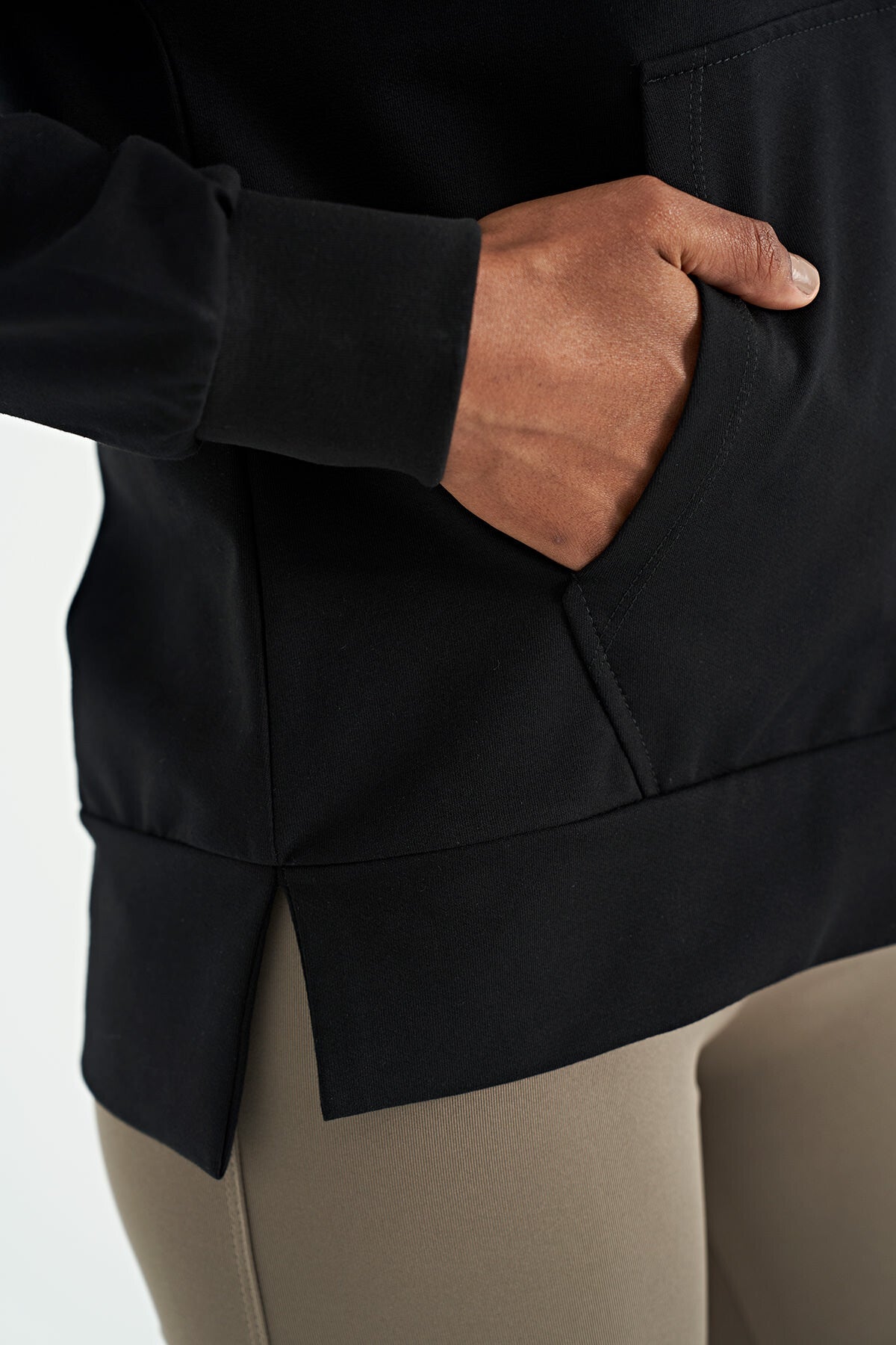 Black Women's Hooded Kangaroo Pocket Oversize Sweatshirt - 97161