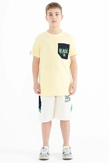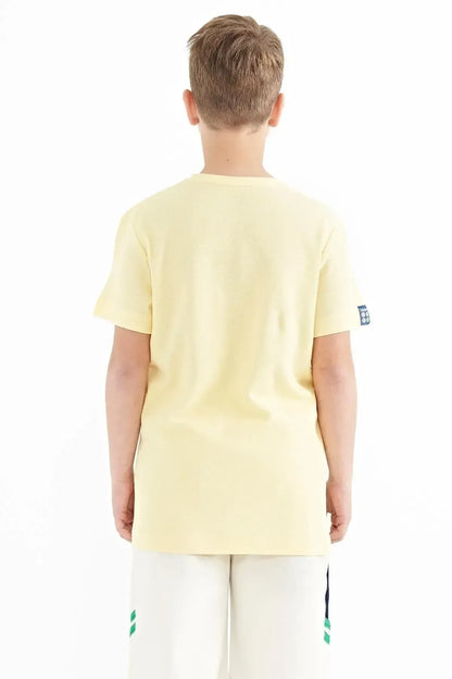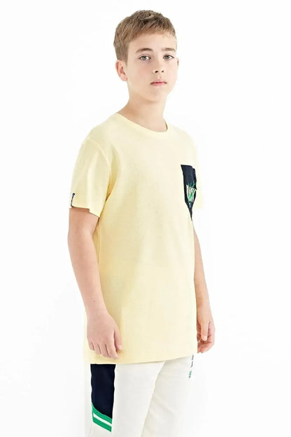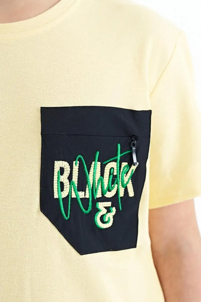 Blue Front Pocket Embroidered Detailed O Collar Standard Fit Boys T-Shirt - 11116