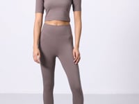 Brown High Waist Capri-Crop T-Shirt Slim Fit Women's Tights Set - 95285