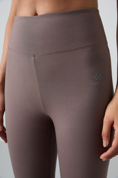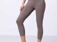 Brown High Waist Slim Fit Narrow Leg Women's Capri Tights - 93097