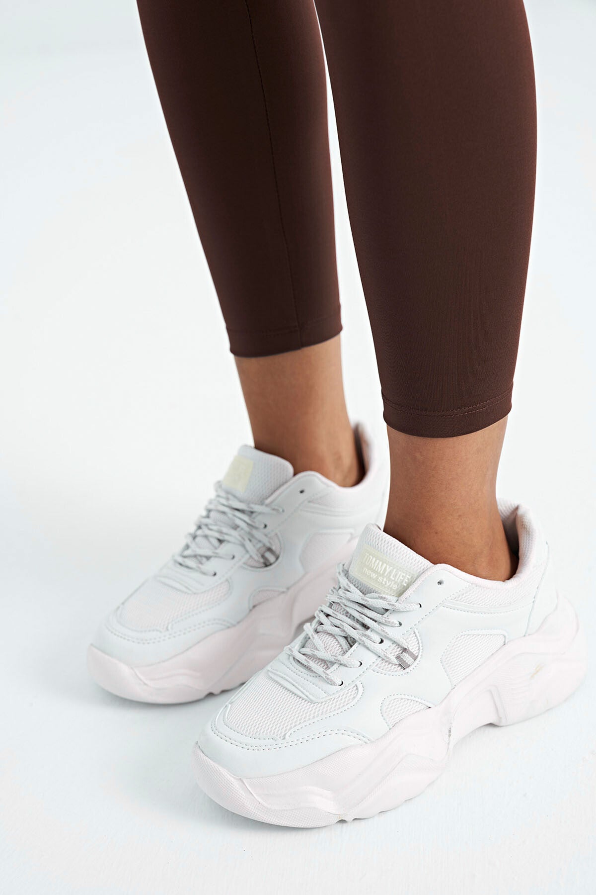 Brown Logo Print Detailed High Waist Scuba Fabric Slim Fit Women's Tights - 94627