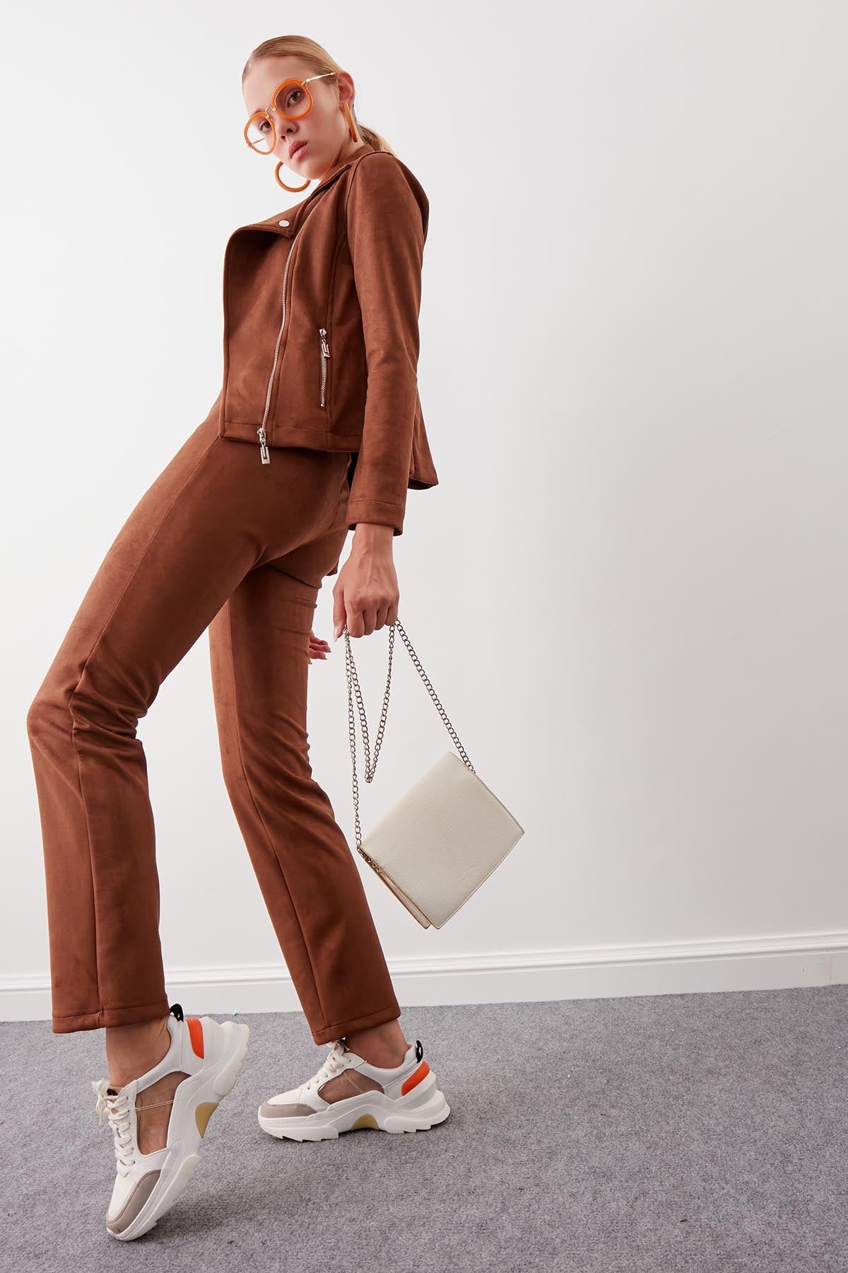 BUTTERFLY COLLAR ARTIFICIAL SUEDE BIKER JACKET