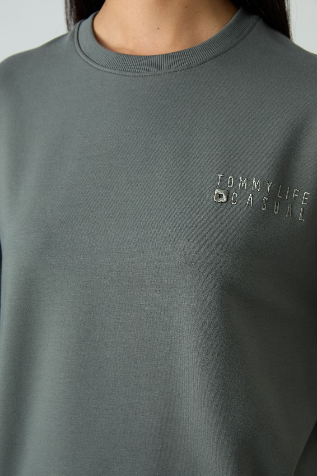 Basic Cotton O-Neck Oversize Elastic Cuffed Women's Tracksuit Set - 95287