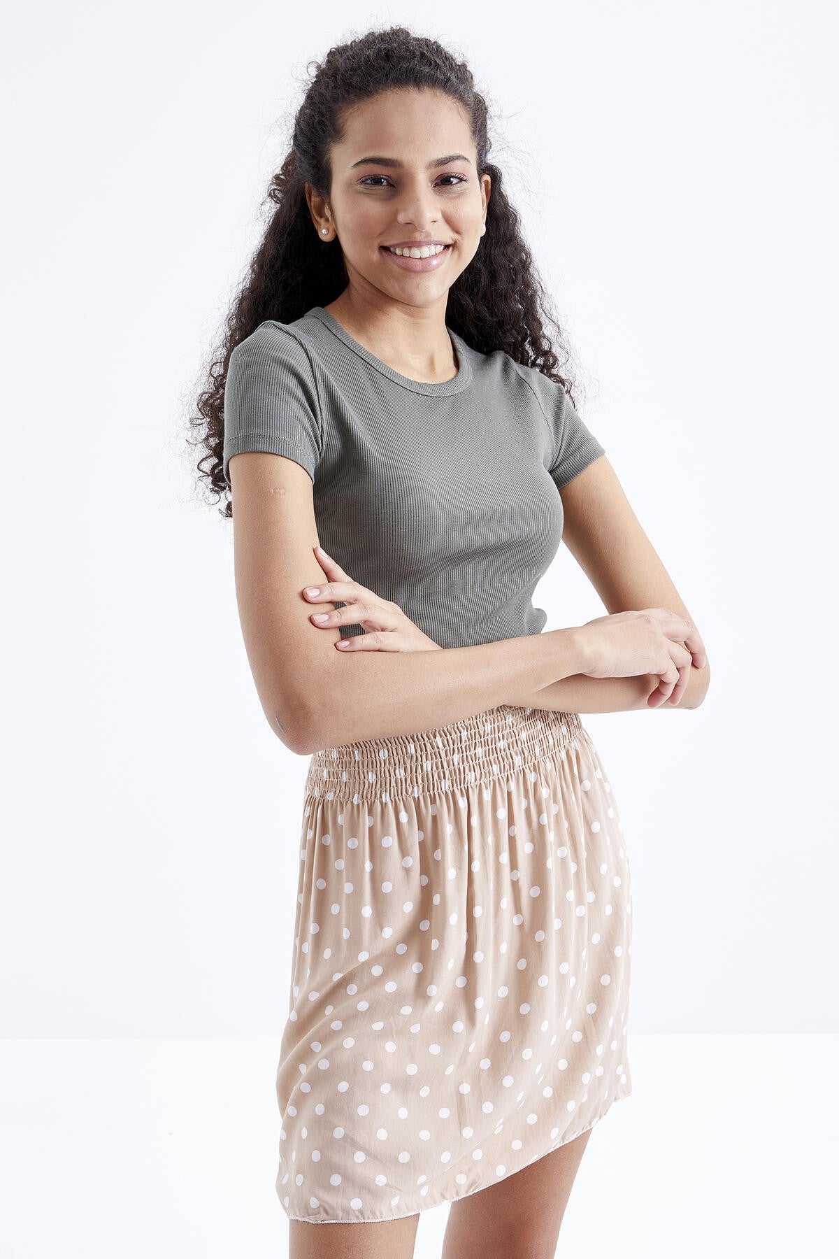 Basic Side Window O Collar Women's Crop Top T-Shirt - 97207