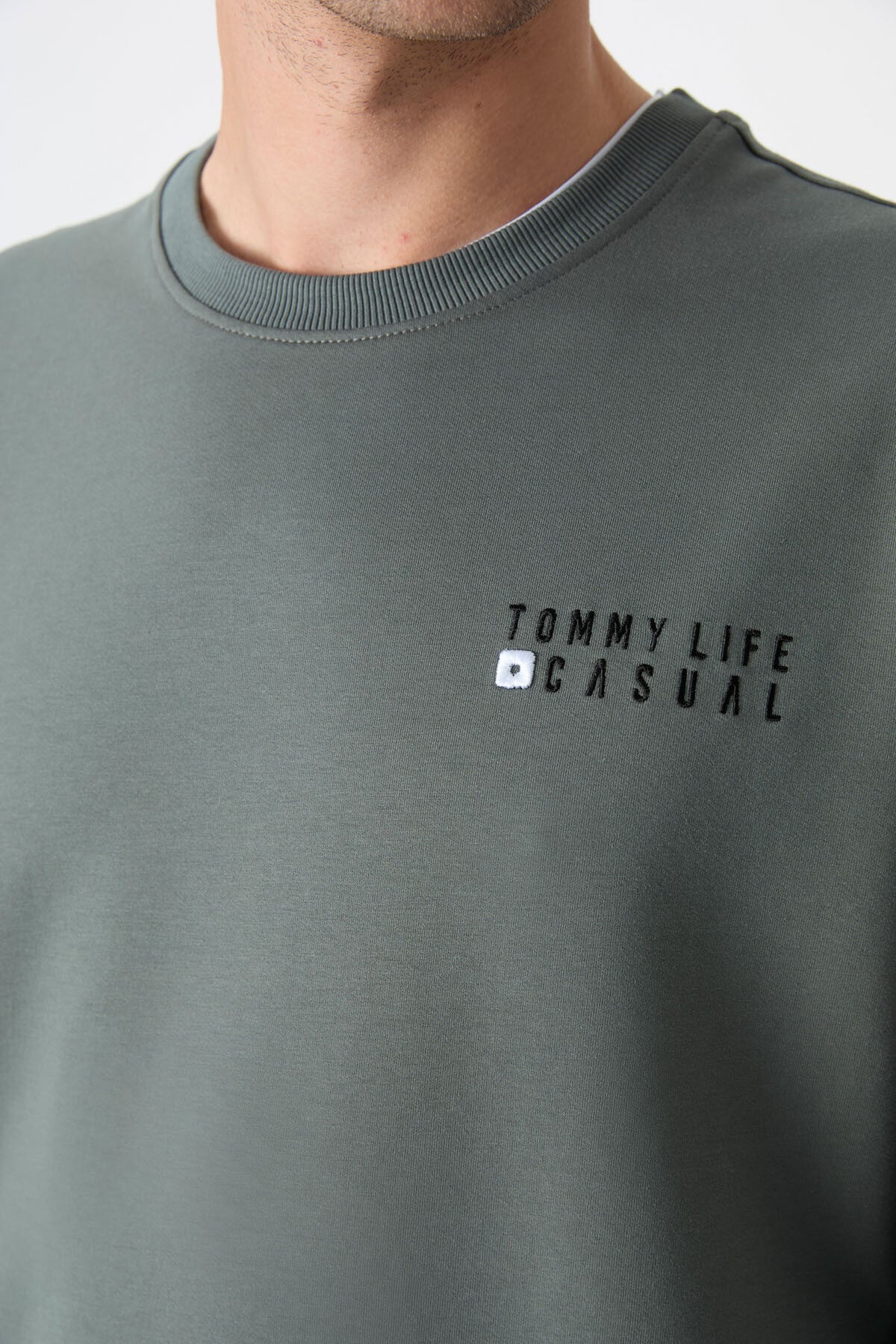 Round Neck Elastic Cuffed Cotton Men's Oversize Tracksuit Set - 85120