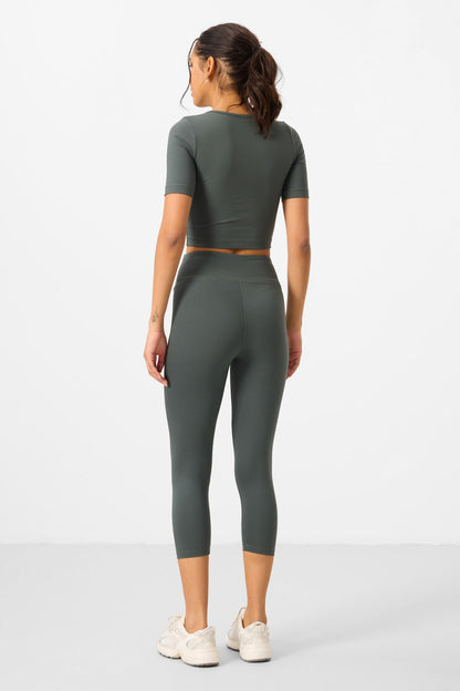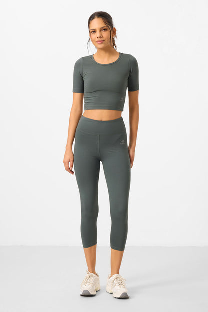 High Waist Capri-Crop T-Shirt Slim Fit Women's Tights Set - 95285
