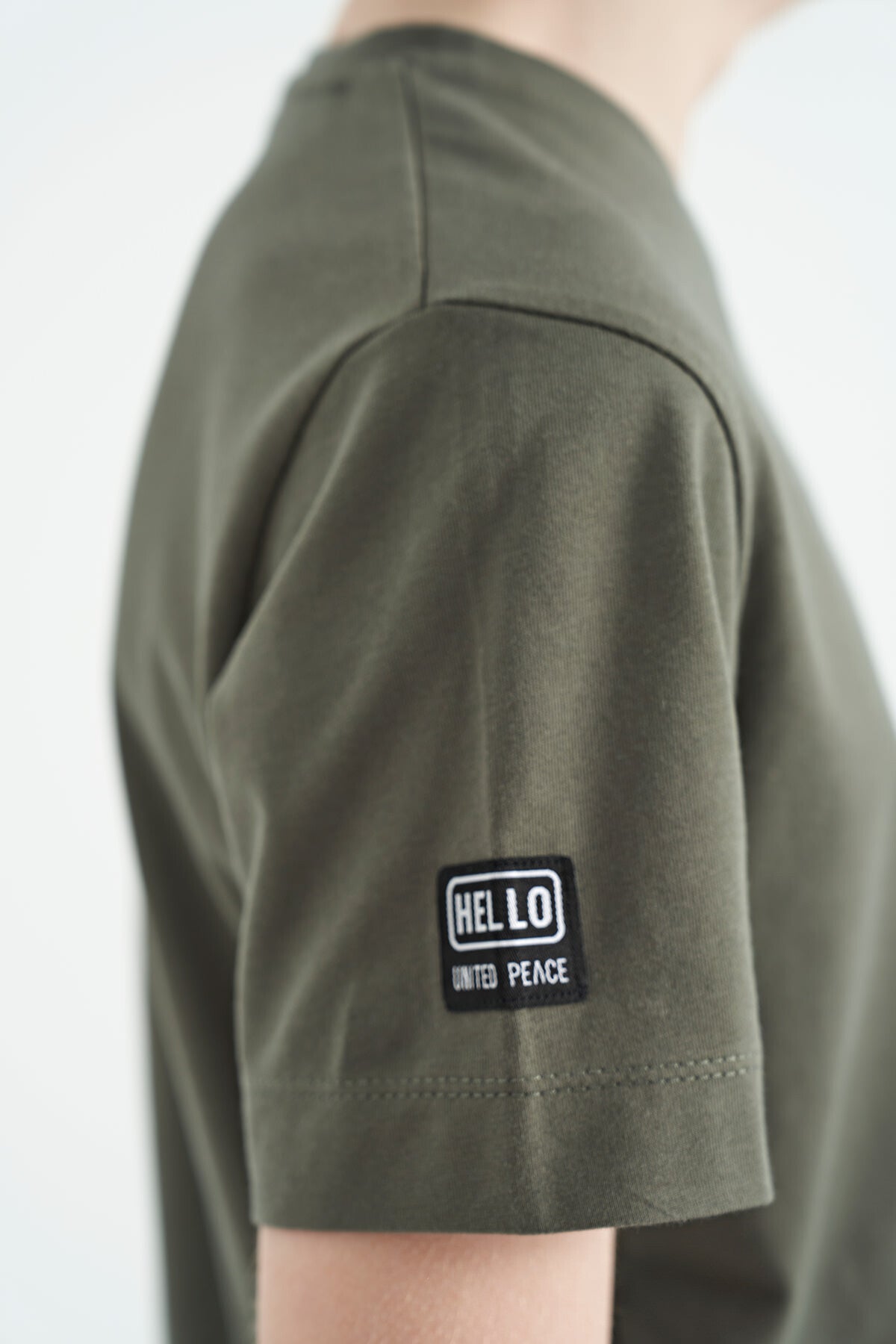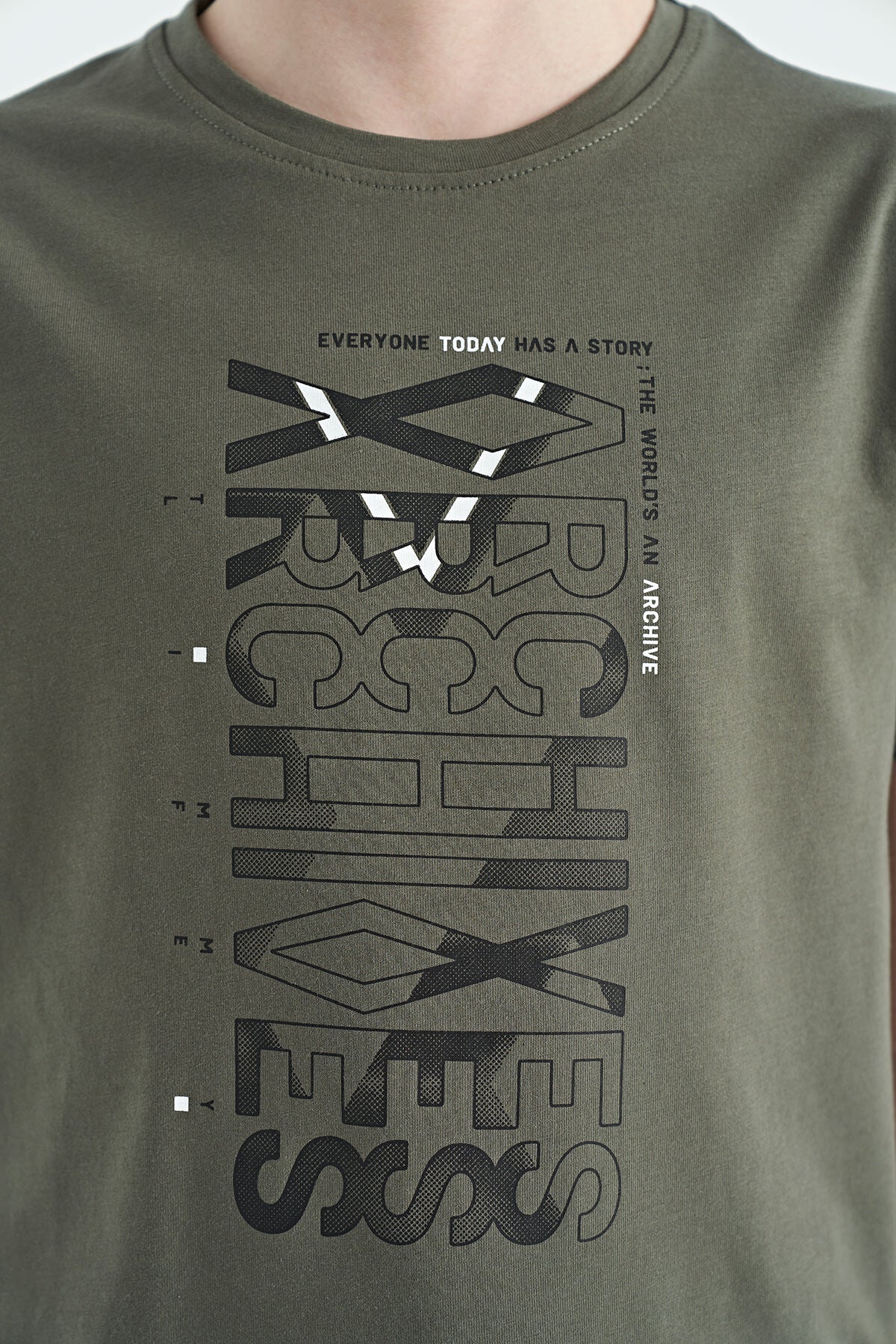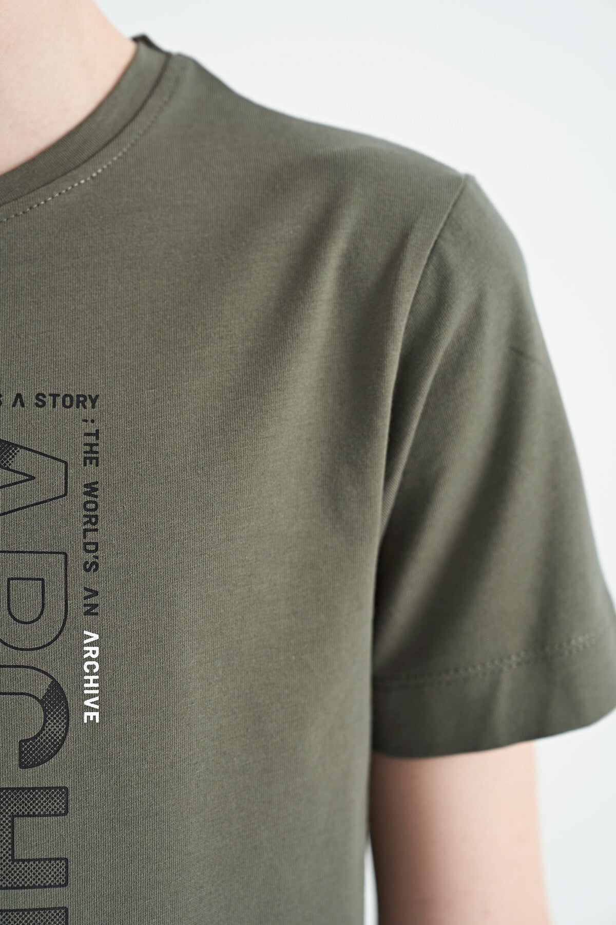 Khaki Pre-Print Detailed O Collar Standard Cut Boys' T-Shirt - 11099