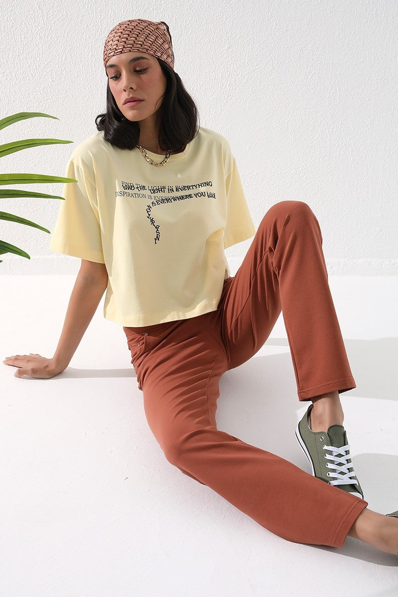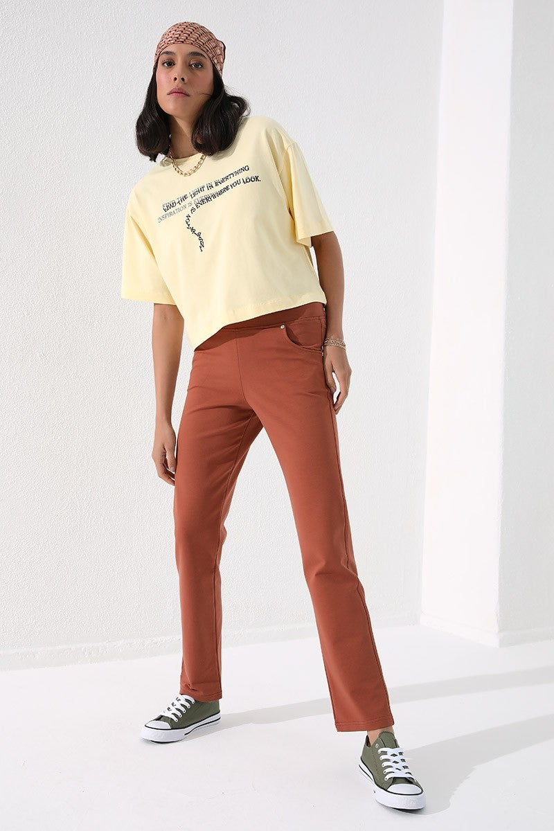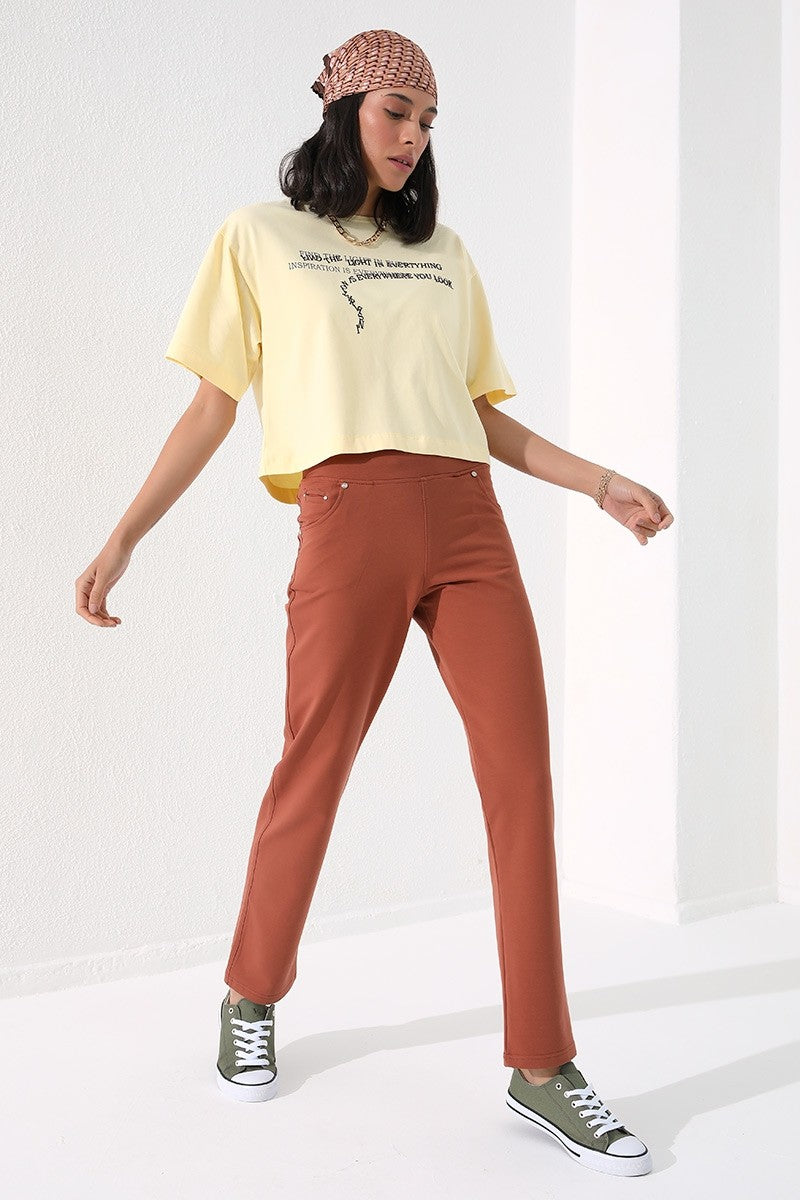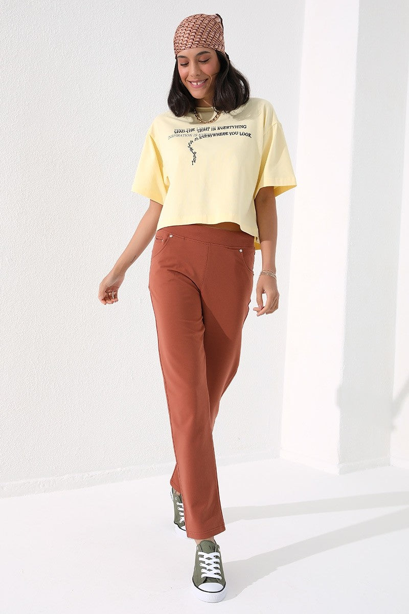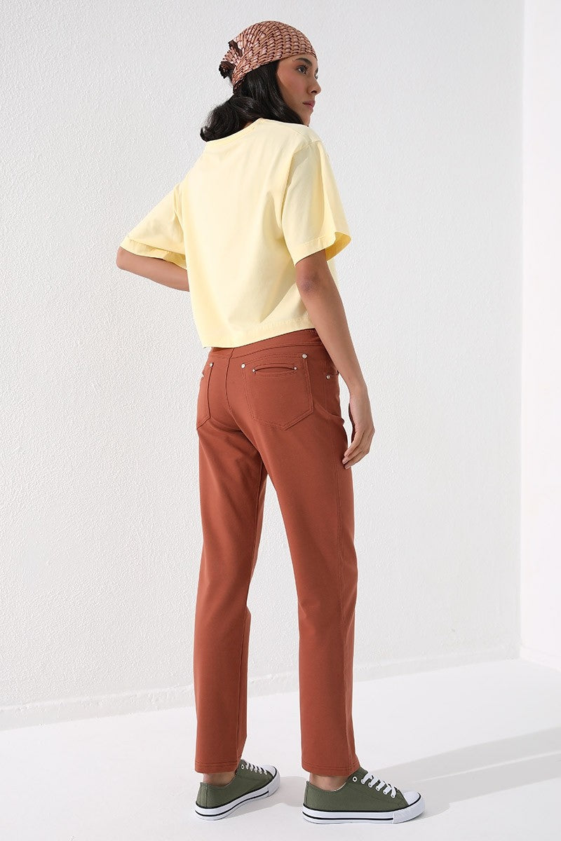 Cinnamon Stone Detailed Pocketed Comfort Fit Classic Cuff Women's Tracksuit Bottom - 94007