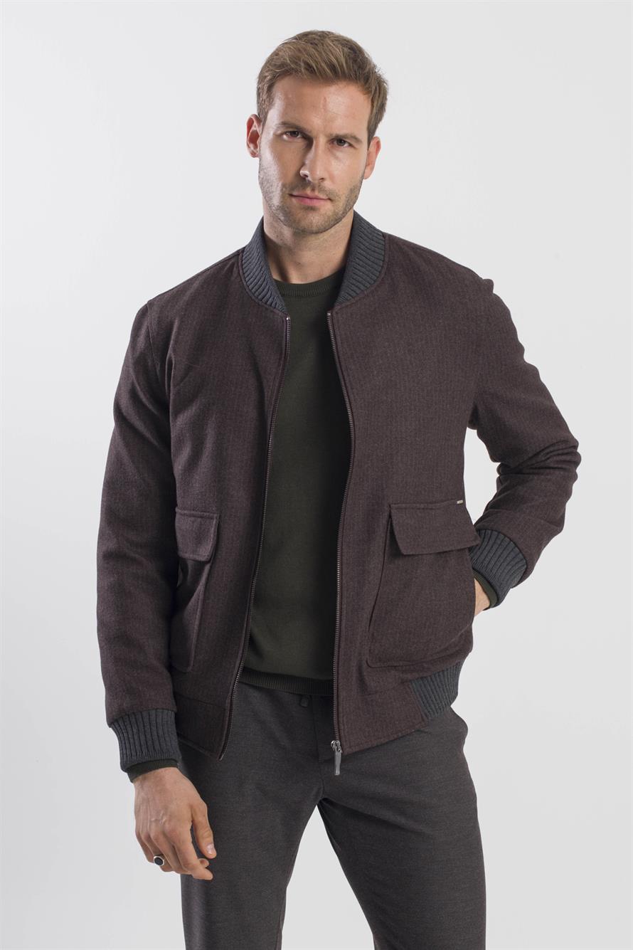 Coffee Comfort Fit College Collar Striped Jacket