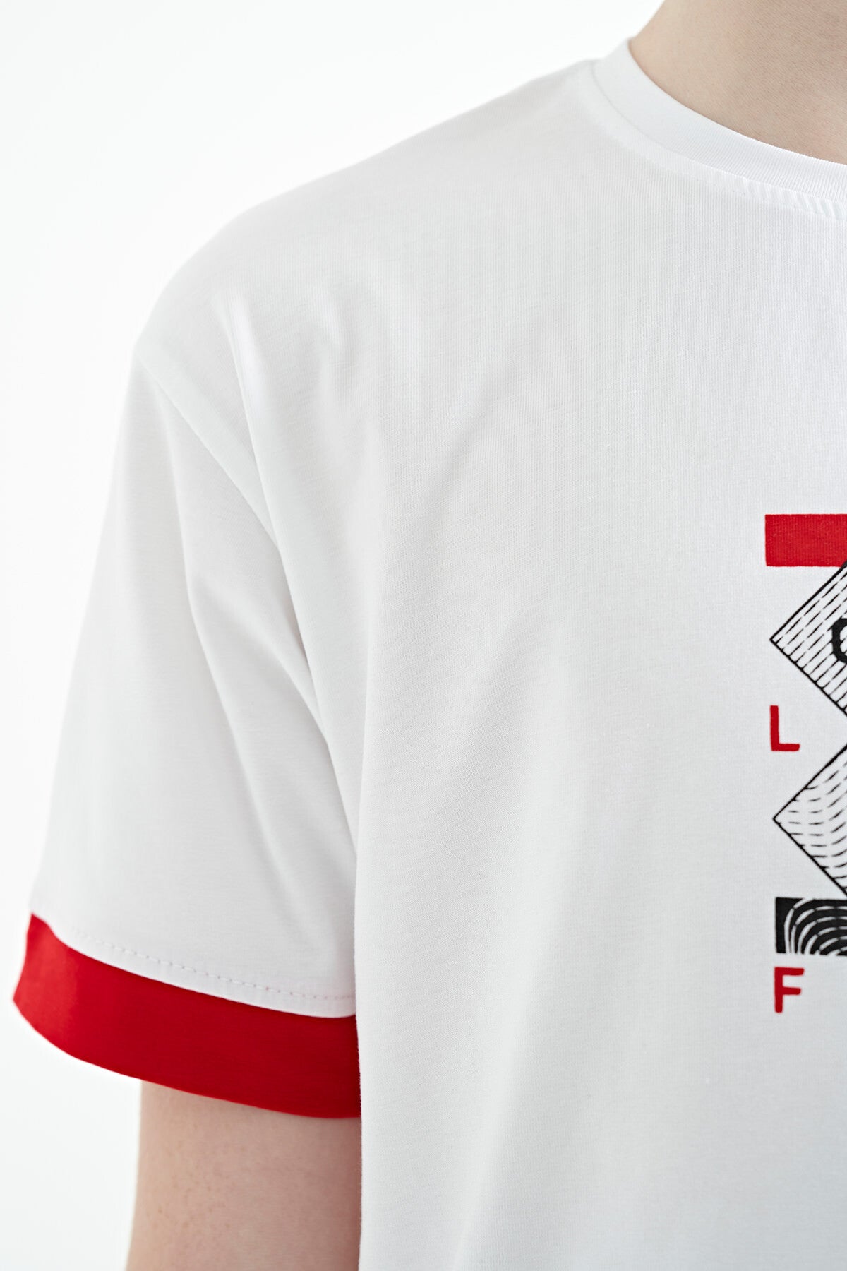Colored Cuff Detailed Printed Oversize Boys' T-Shirt - 11137