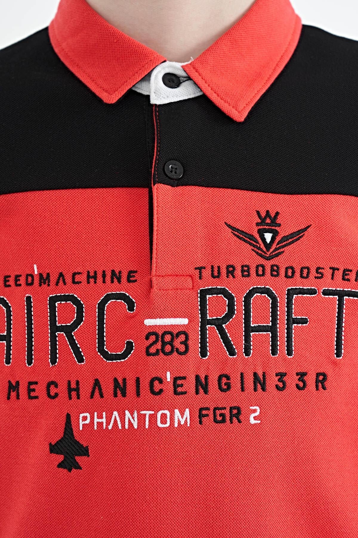 Coral Color Block Letter Embroidered Standard Fit Polo Collar Boys T-Shirt - 11087