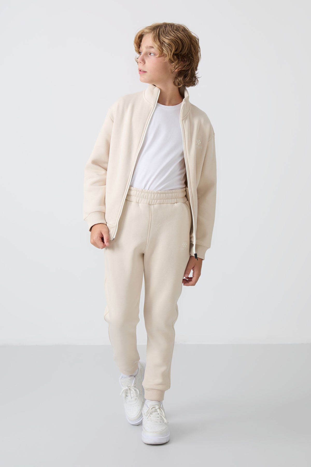 Cotton Thick Inner Fleece Soft Textured Standard Fit Embroidered Boys Tracksuit Set - 11256