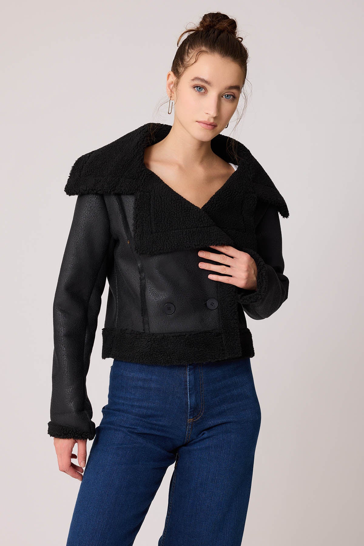 FUR CROP BIKER JACKET WITH FRONT BUTTON