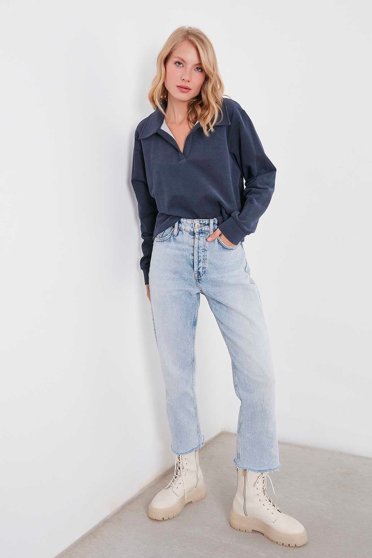 CROP KNITTED SWEATSHIRT WITH A COLLAR