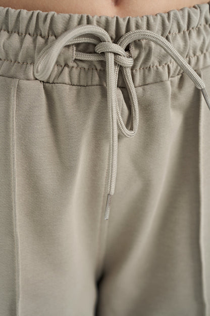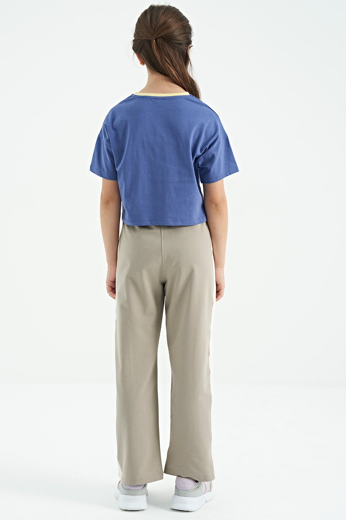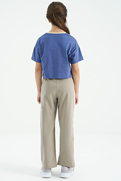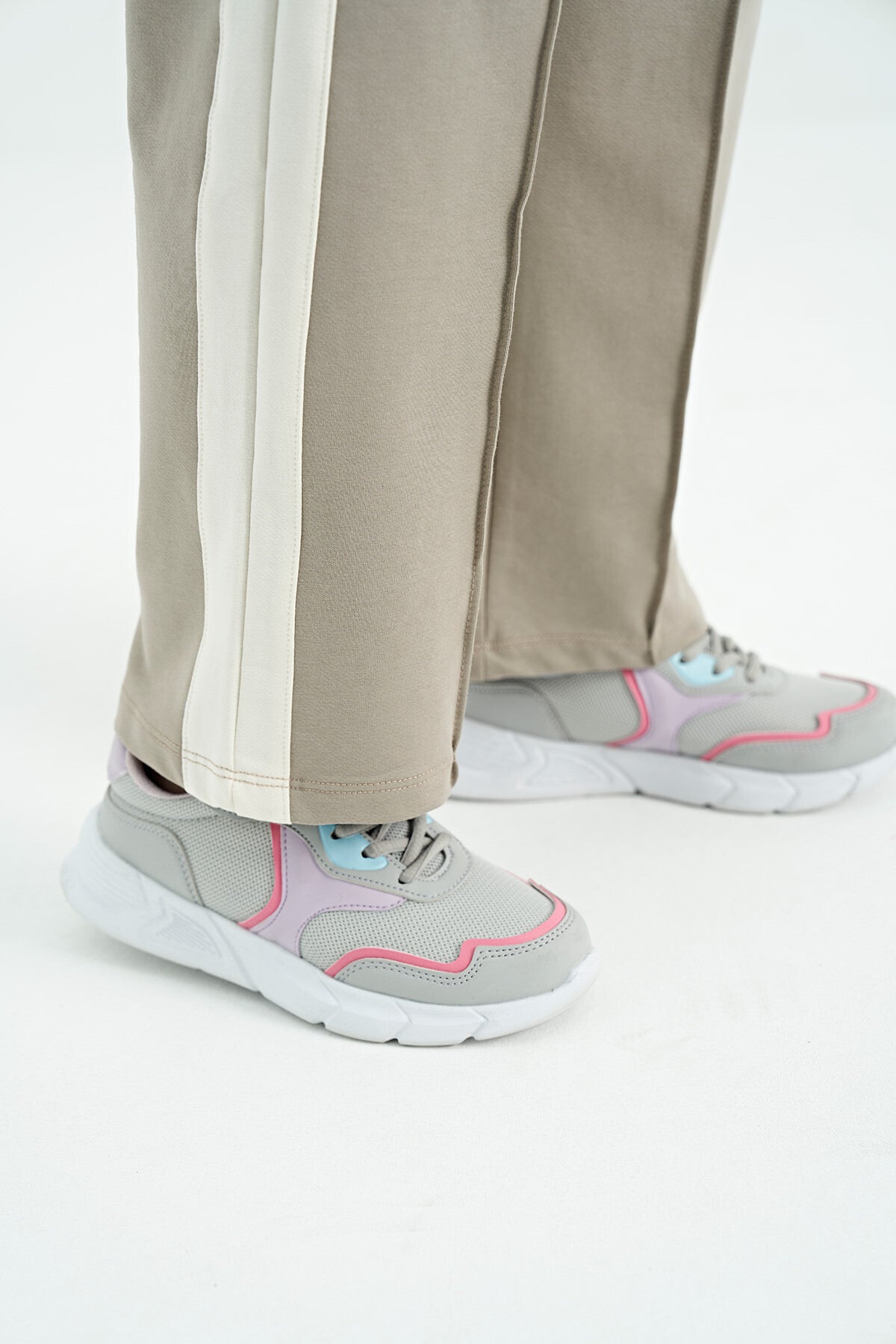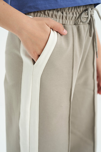 Dark Beige Side Striped Detailed Laced Relaxed Fit Wide Leg Girls' Tracksuit Bottom - 75119