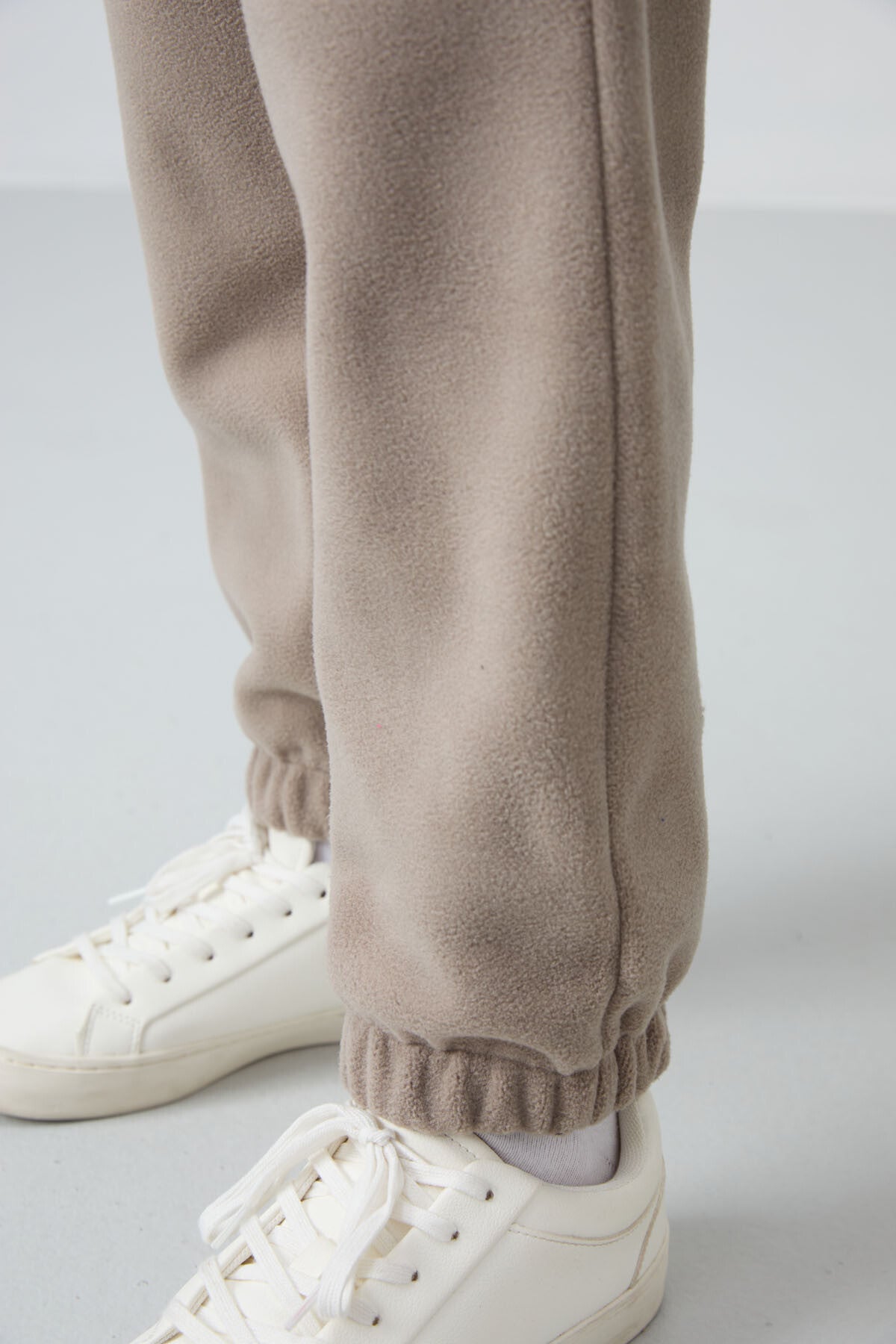 Dark Beige Thick Soft Textured Standard Fit Embroidered Fleece Girls' Tracksuit Bottom - 75155