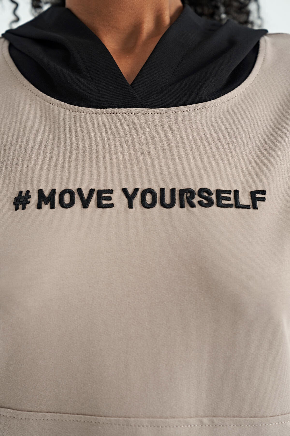 Dark Beige Women's Hooded Kangaroo Pocket Oversize Sweatshirt - 97161
