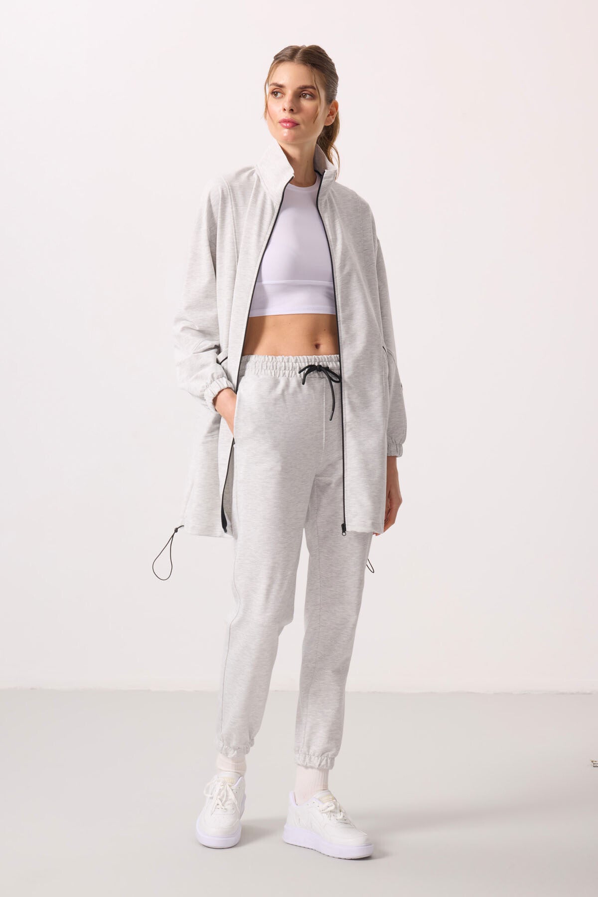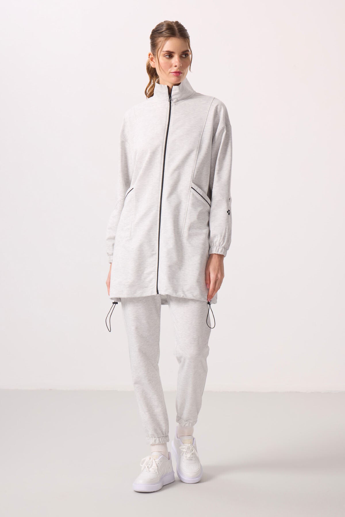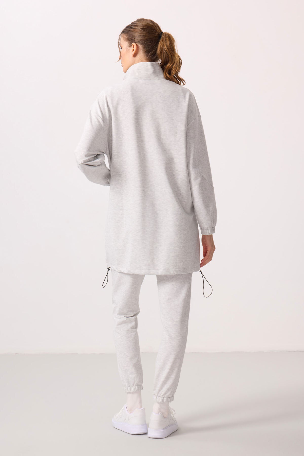 Dark Brown High Neck Zippered Comfort Fit Women's Tracksuit Tunic Set - 95345