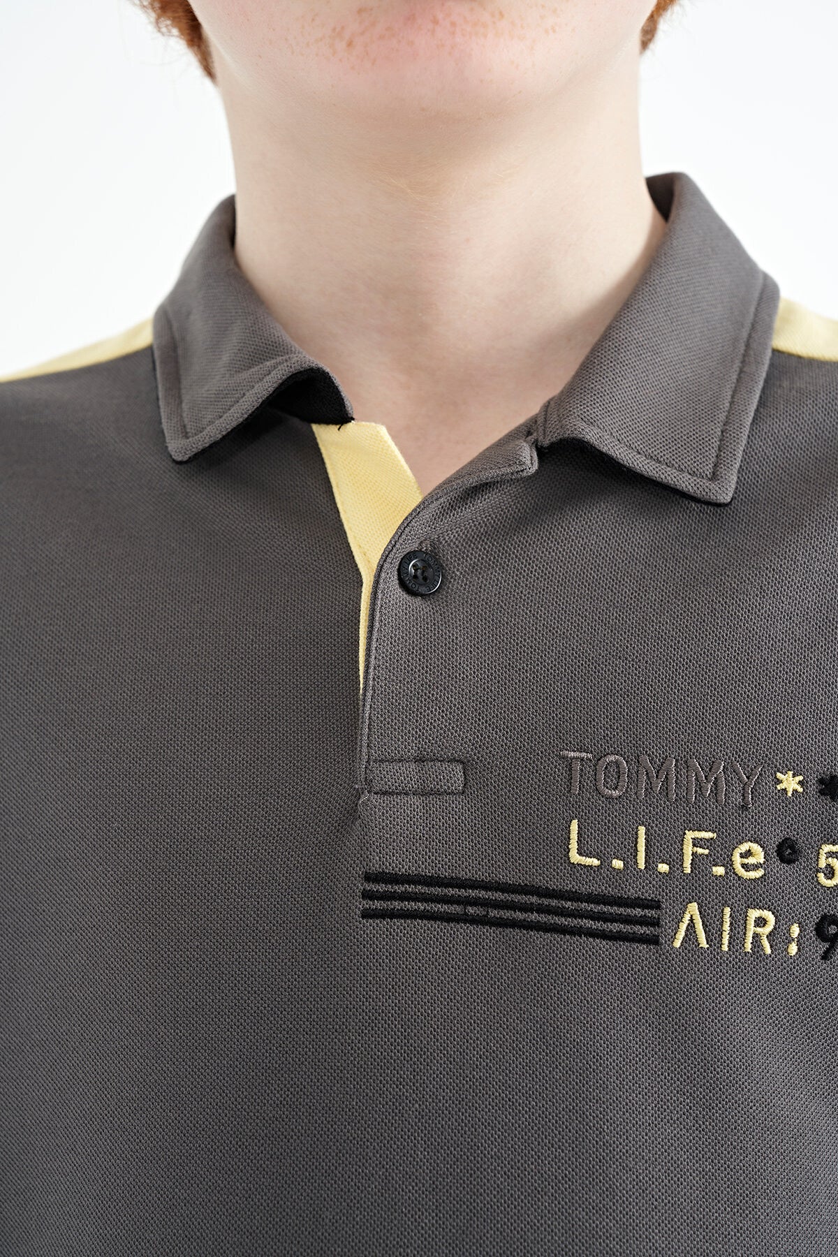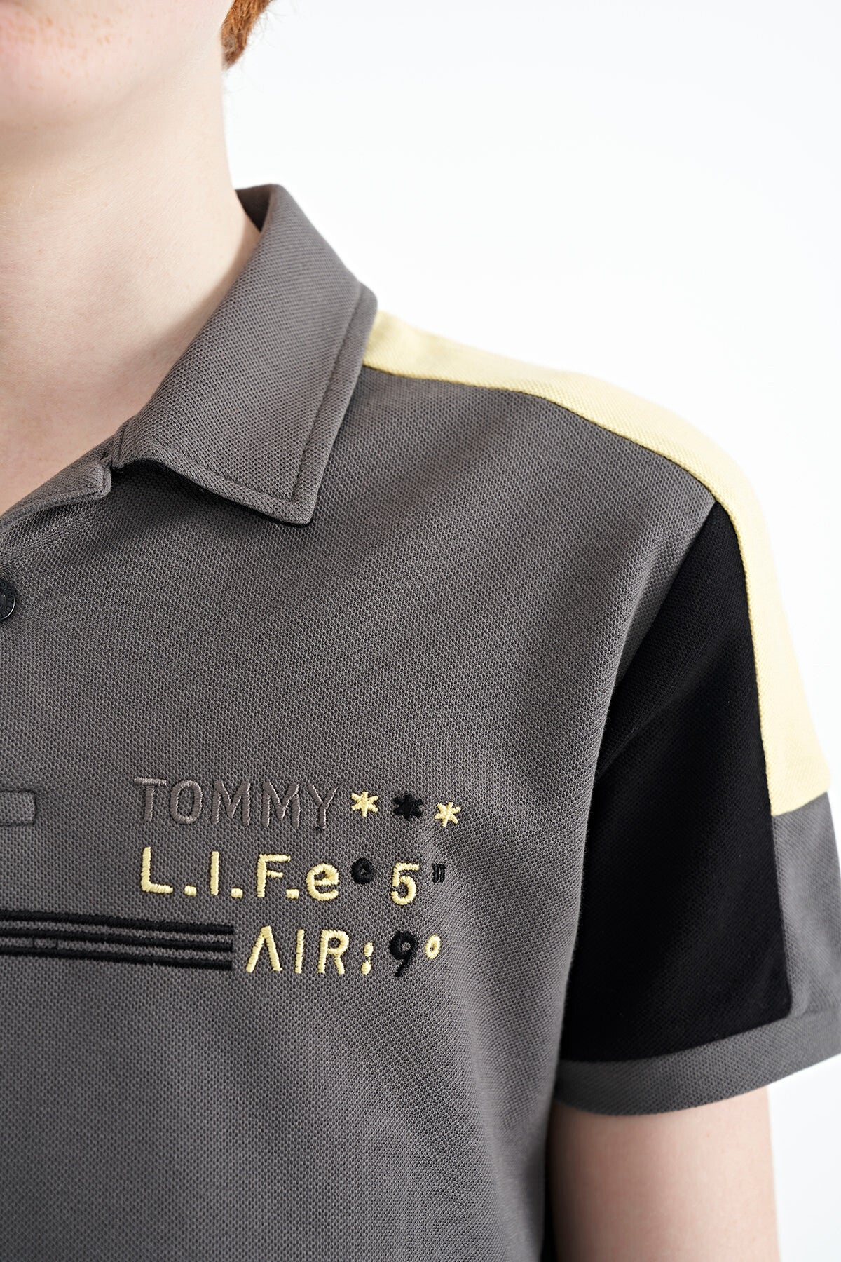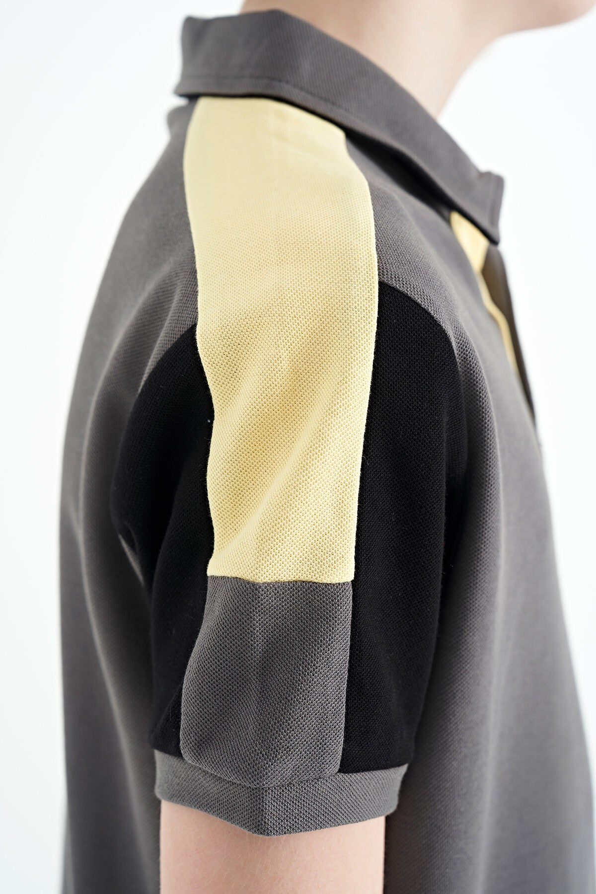 Dark Gray Color Blocked Shoulder Trim Detailed Standard Fit Boys T-Shirt - 11155