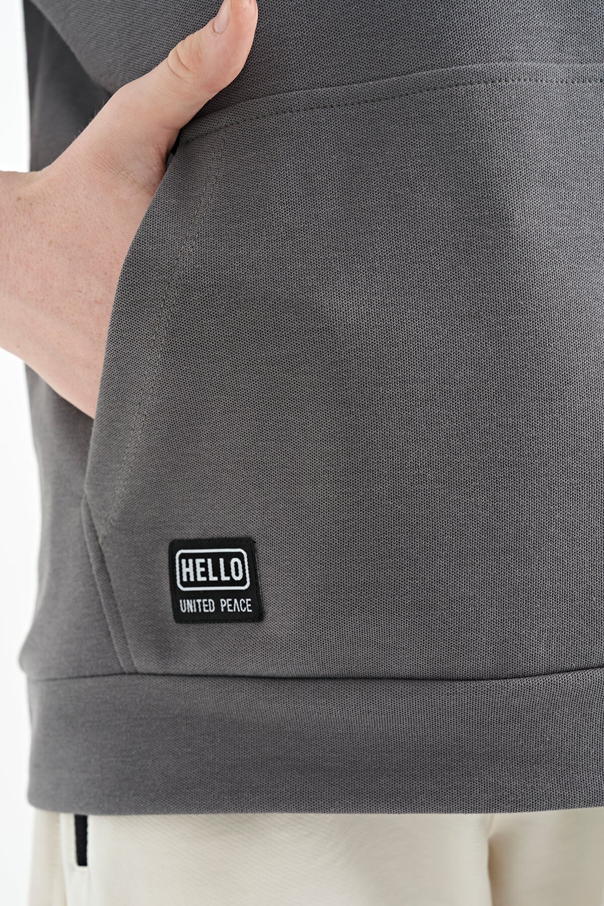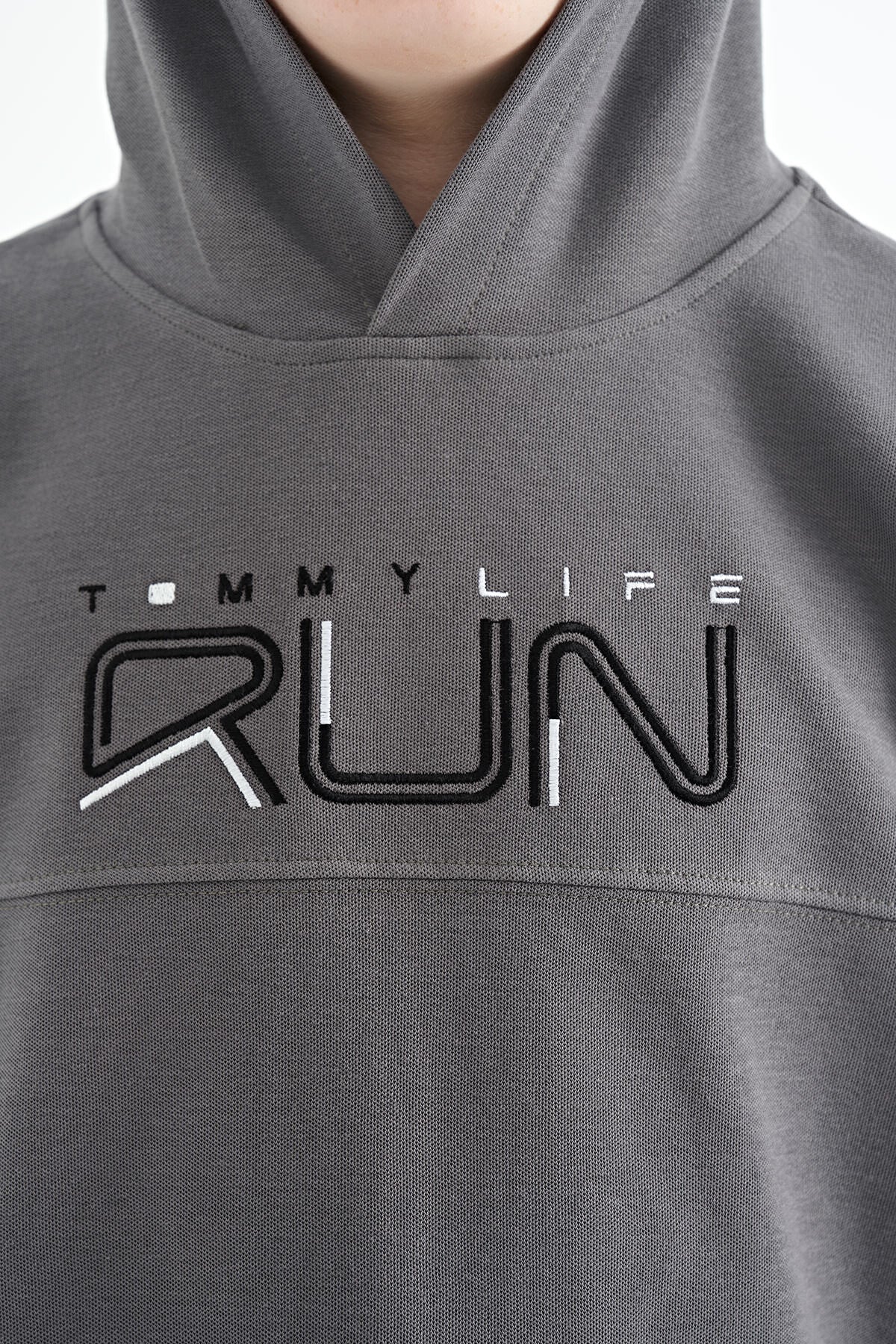 Dark Gray Kangaroo Pocket Hooded Oversize Boys T-Shirt - 11160