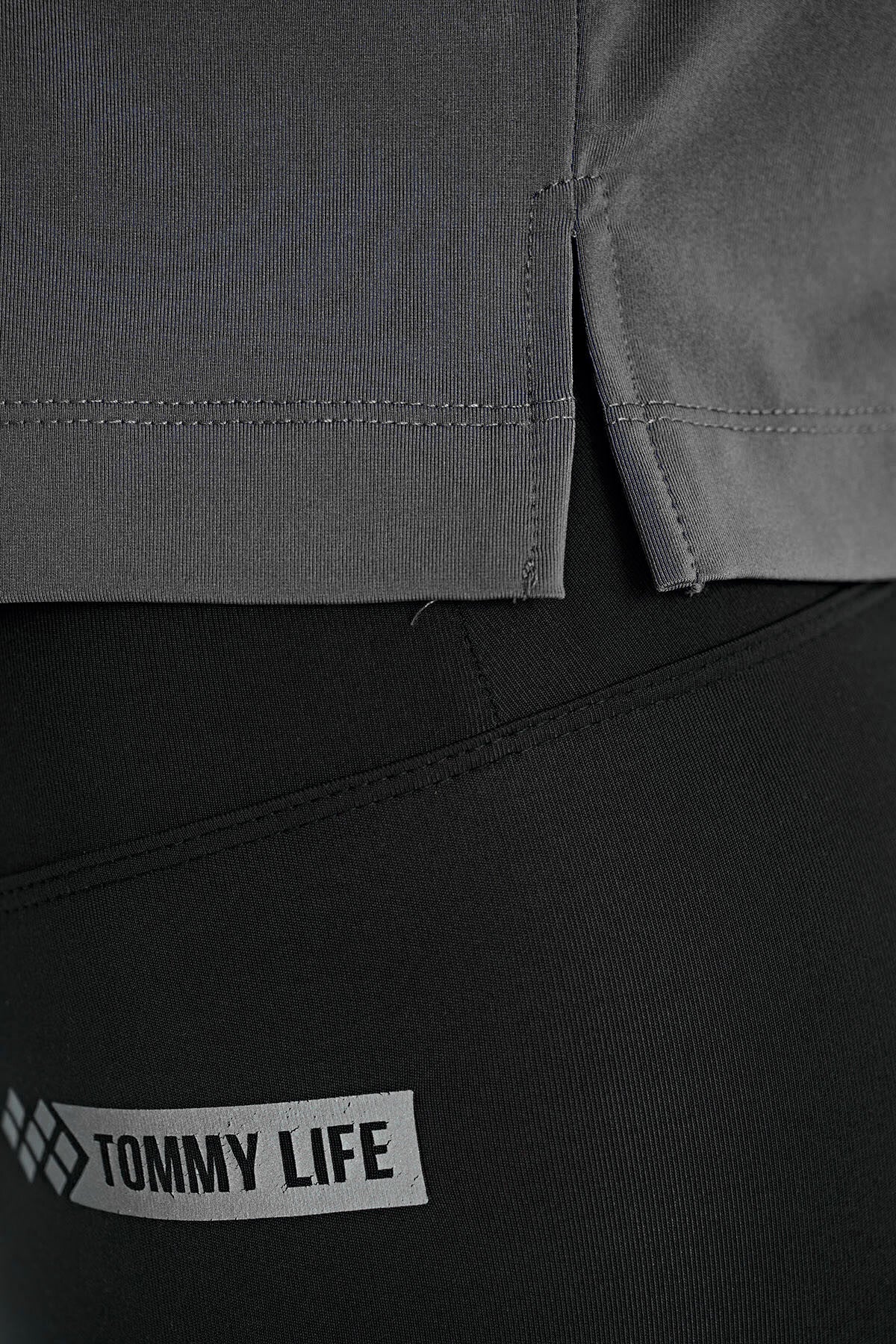 Dark Gray Logo Printed O Neck Short Sleeve Oversize Women's Crop T-Shirt - 97262