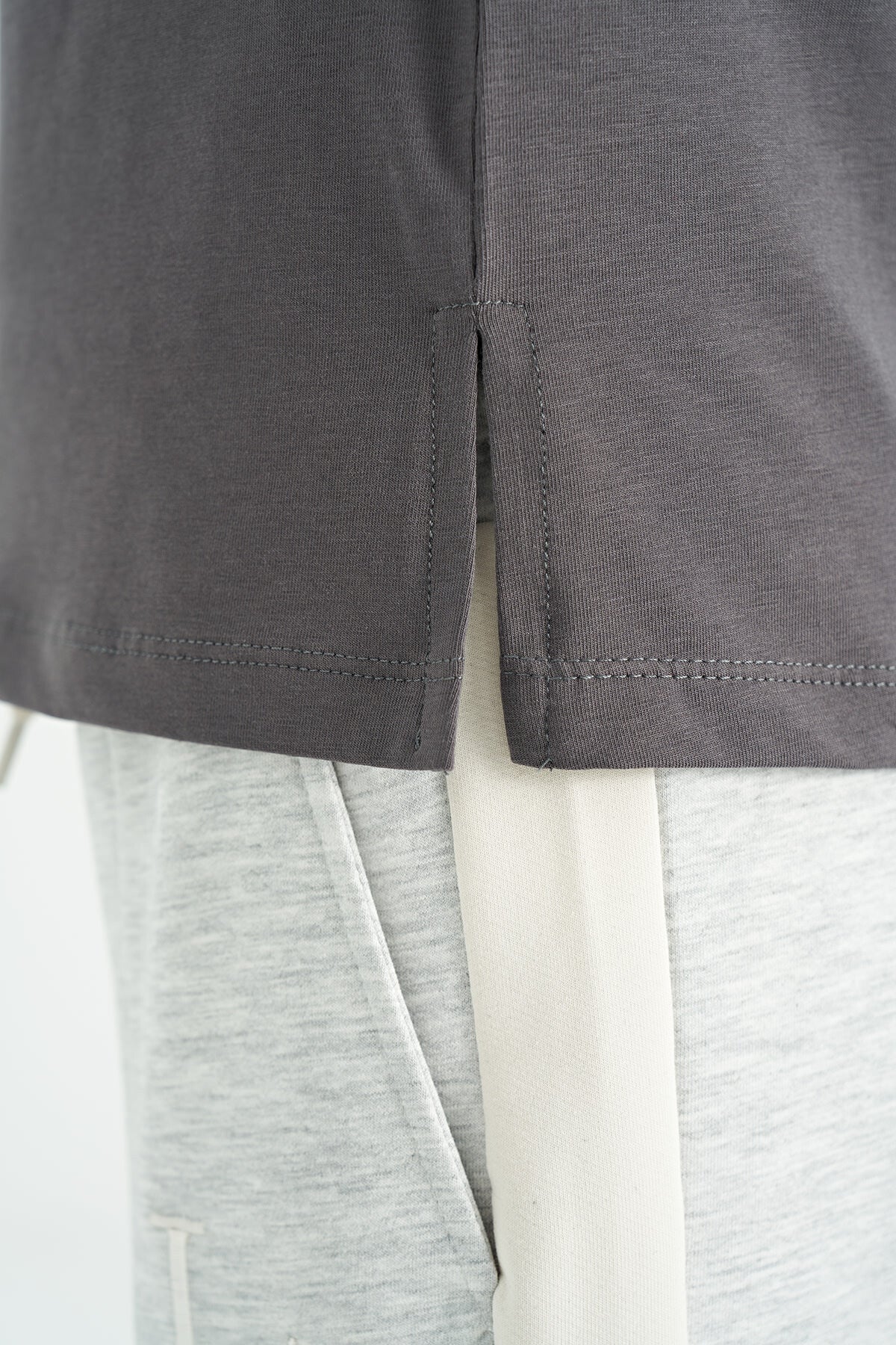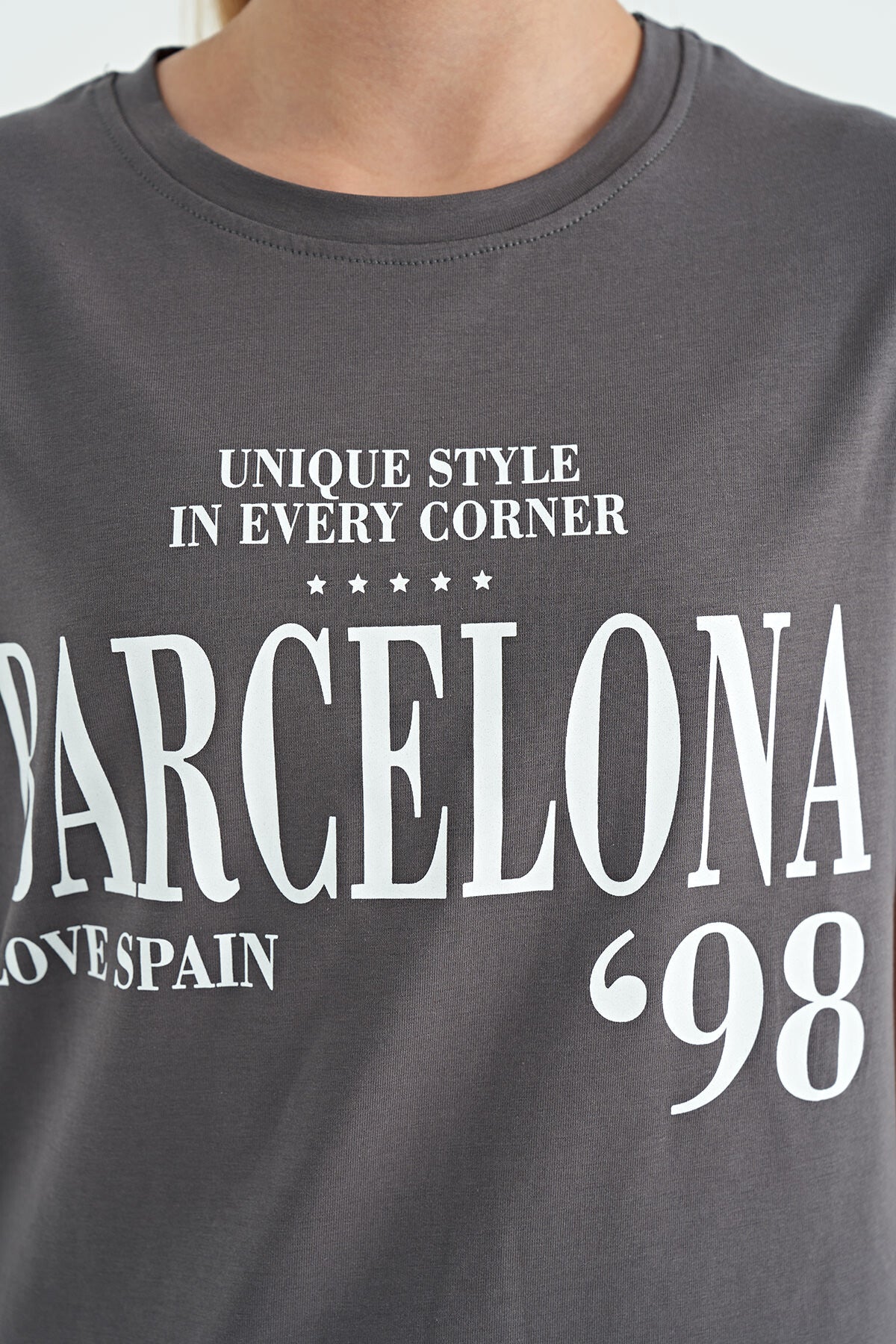 Dark Gray O Collar Printed Drop Shoulder Oversize Girl's T-Shirt - 75115