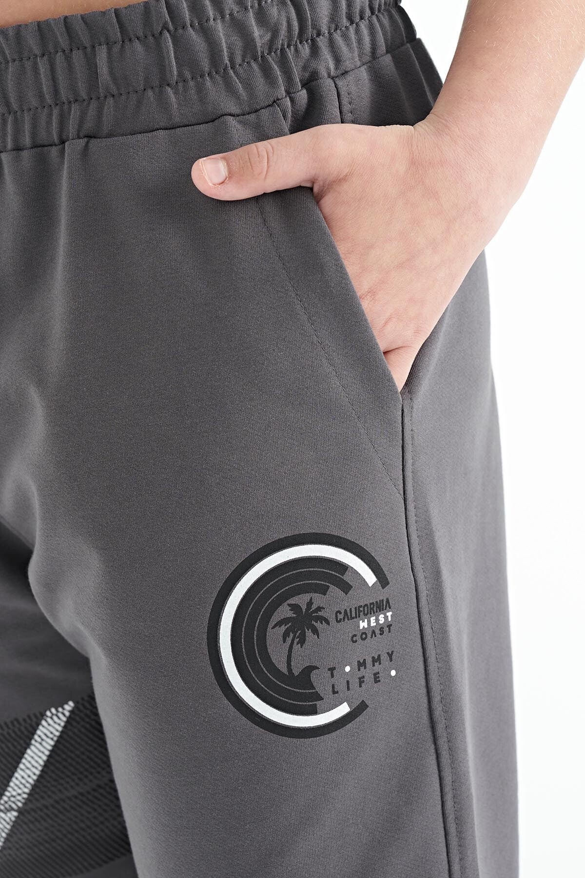 Dark Grey Print Detailed Laced Standard Fit Boys Shorts - 11125