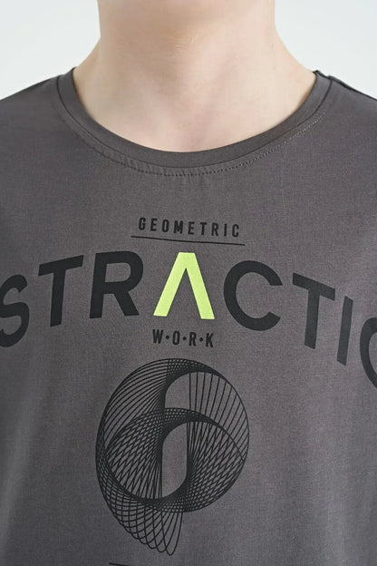 Dark Grey Print Detailed O Collar Standard Fit Boys T-Shirt - 11103