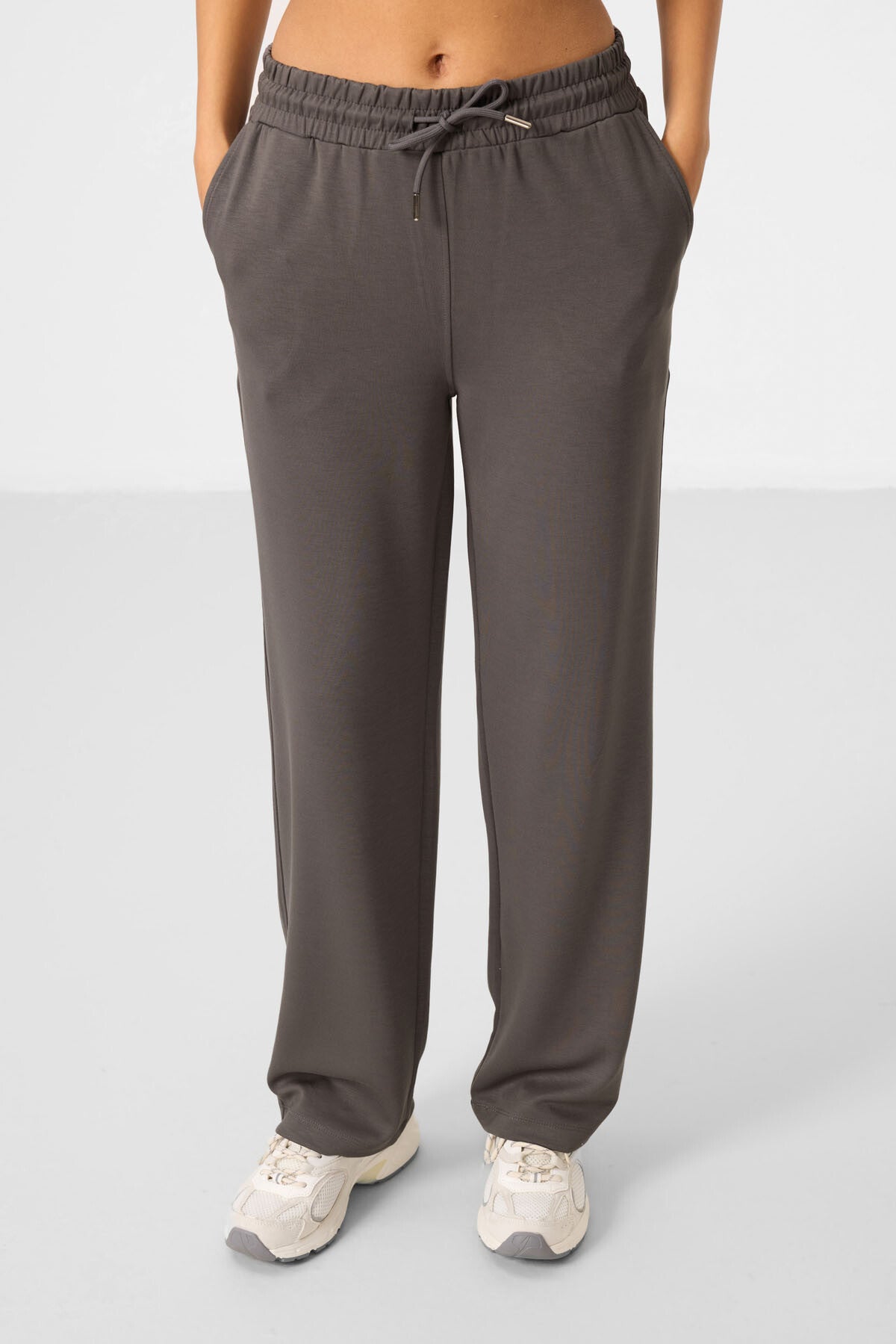 Dark Gray Soft Textured Hooded Oversize Women's Tracksuit Tunic Set - 95348