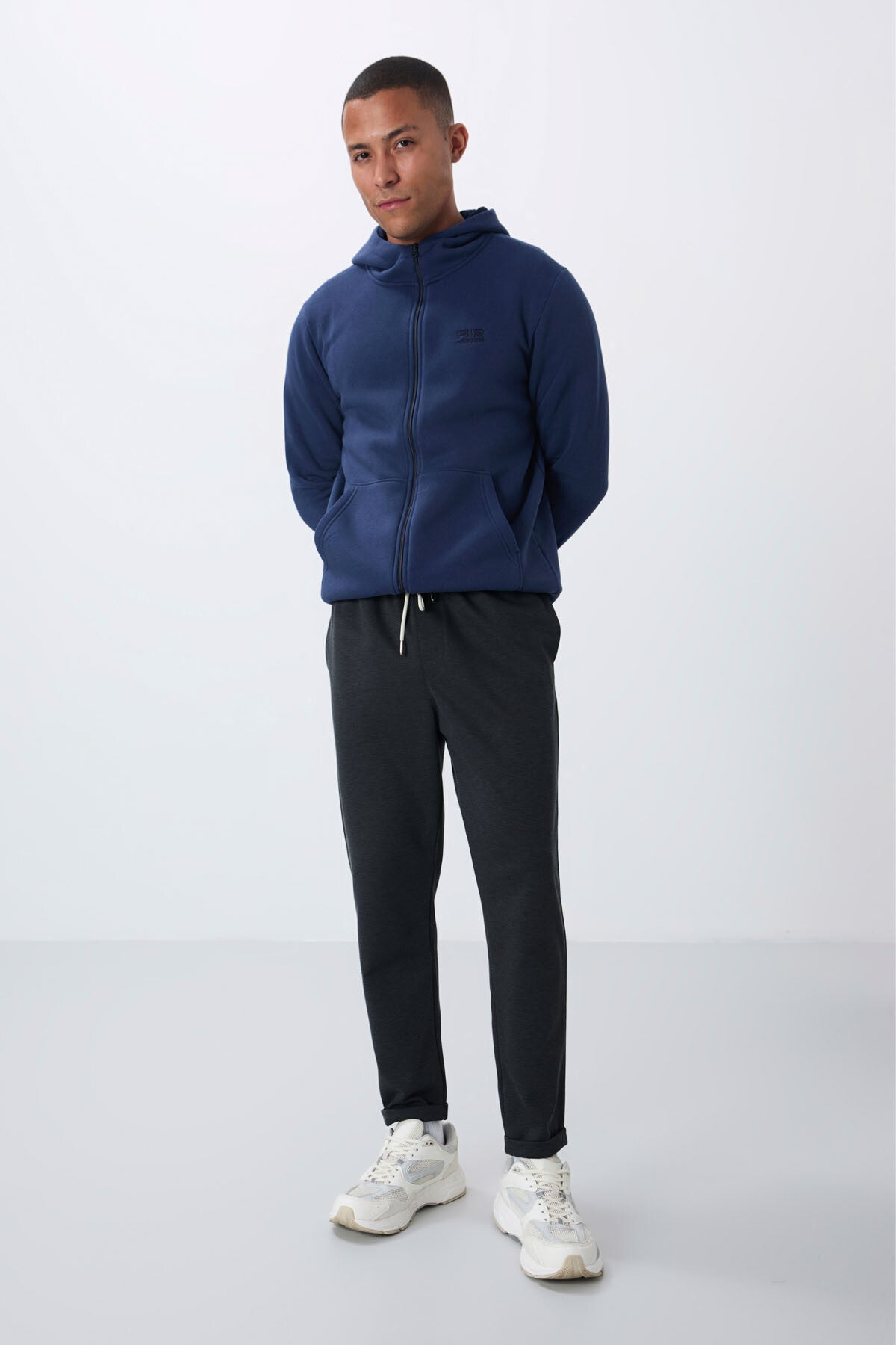 Dark Grey Textured Surface Standard Fit Men's Tracksuit Bottom- 82154