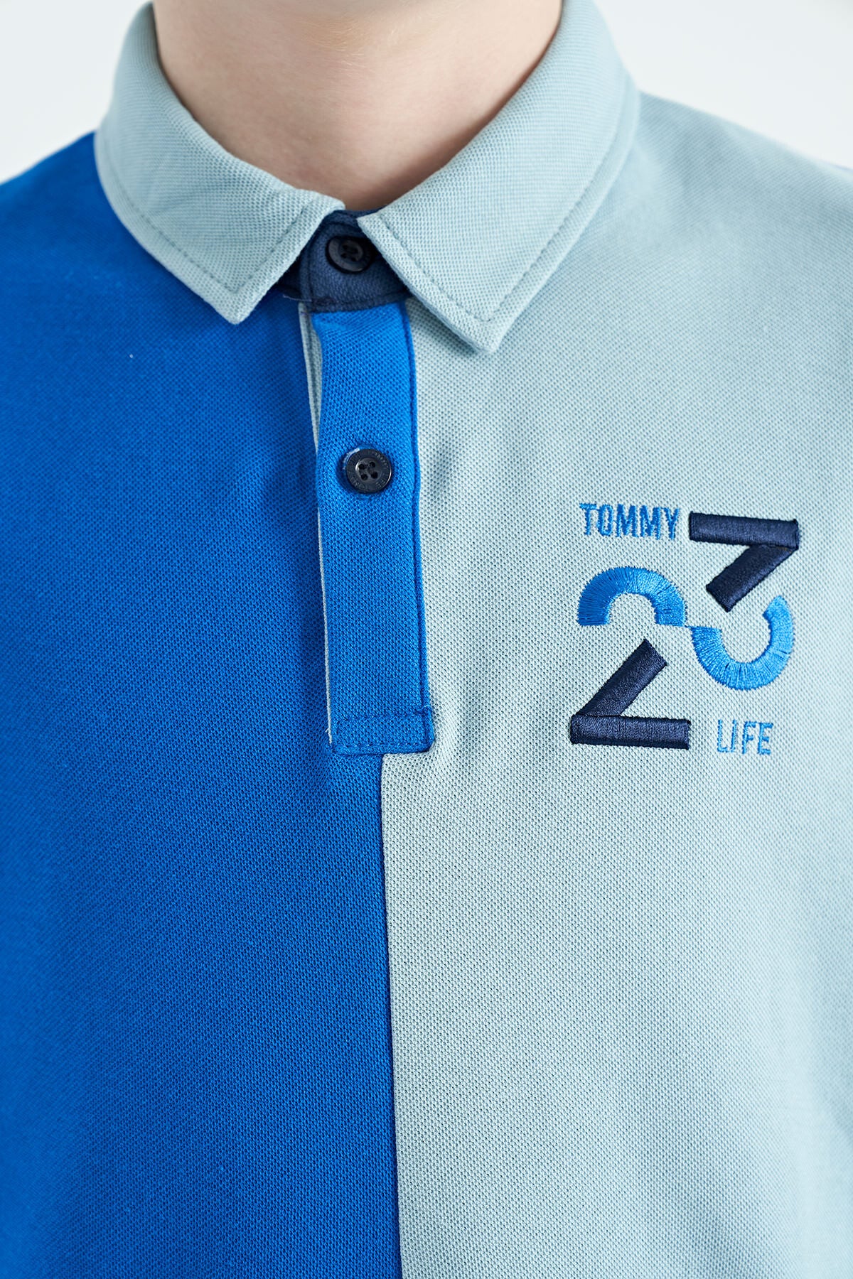 Detailed Standard Pattern Embroidered Color Block Polo Collar Boys' T-Shirt - 11108