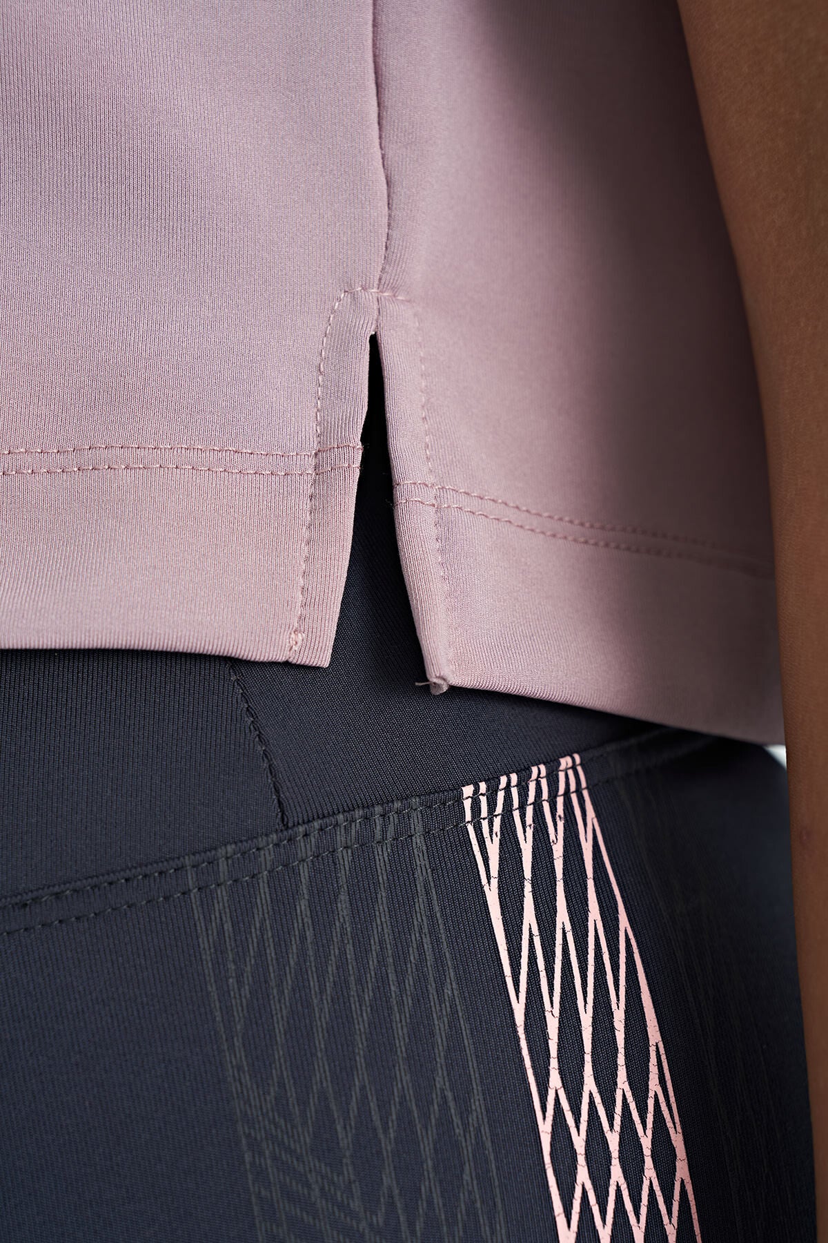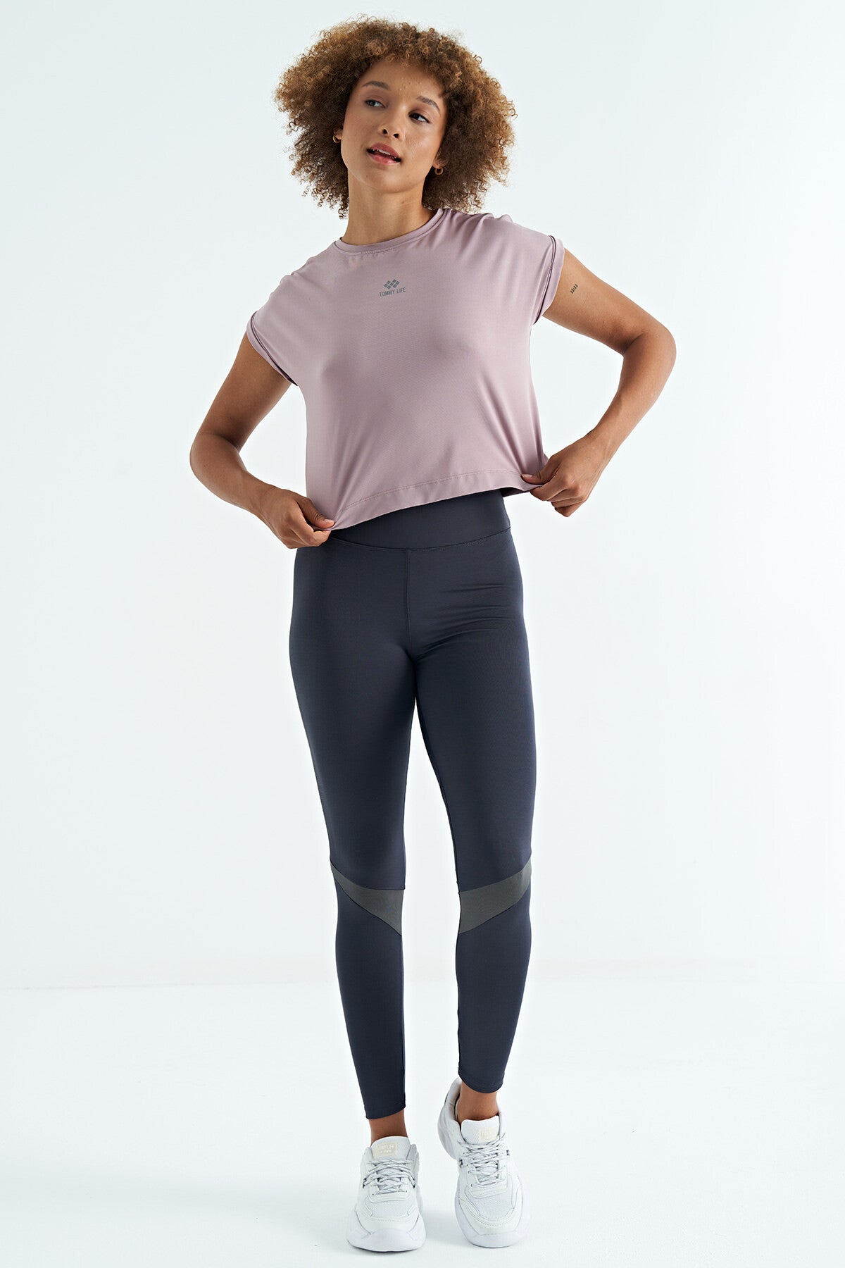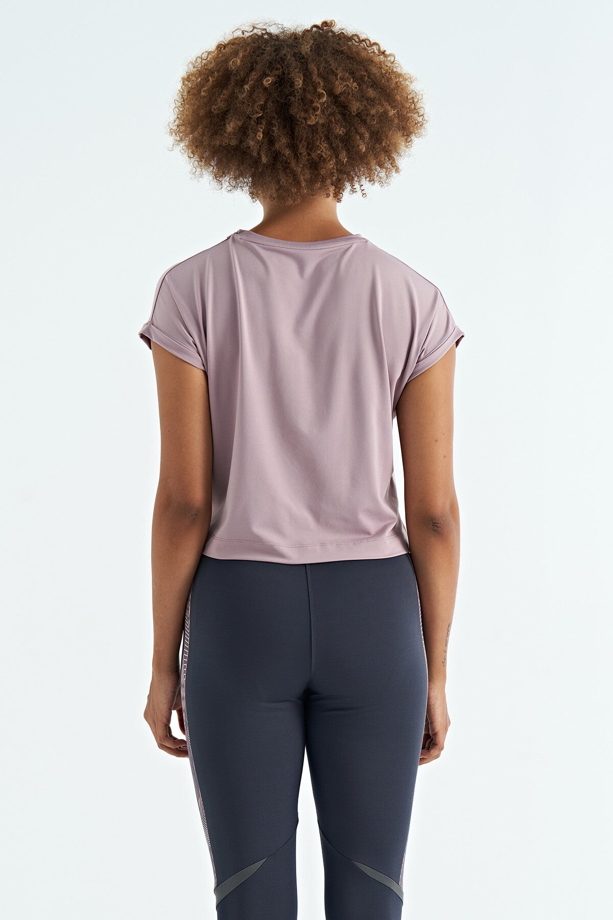 Dried Rose Logo Printed O Collar Low Sleeve Oversize Women's Crop T-Shirt - 97262
