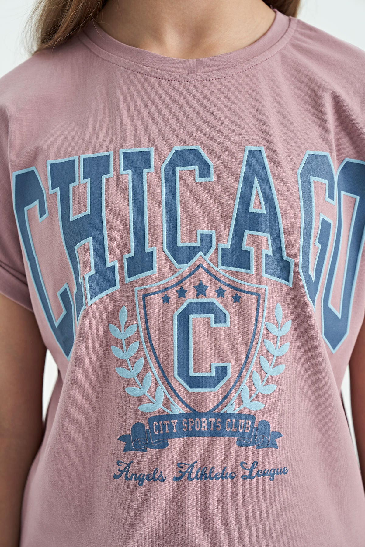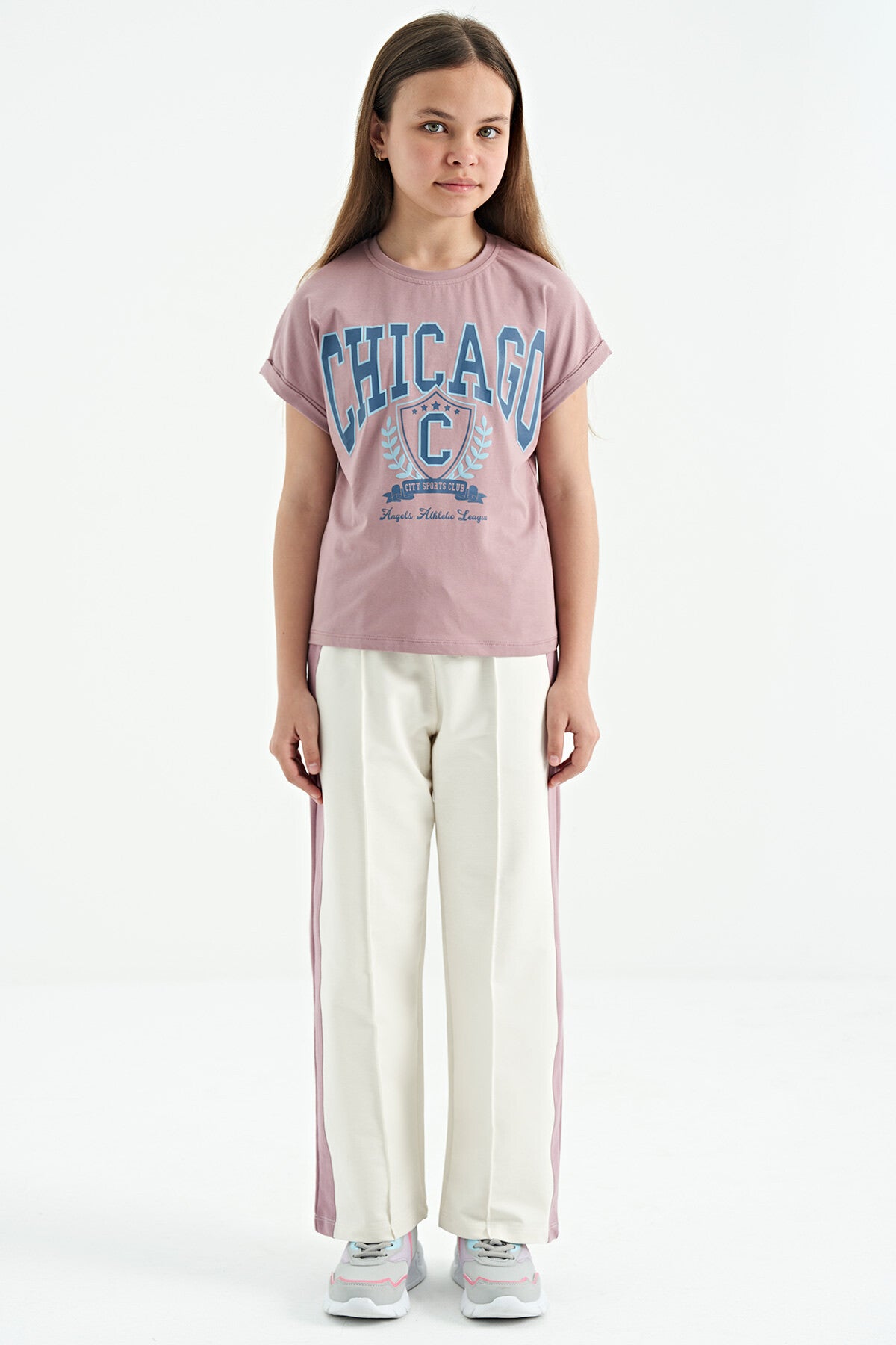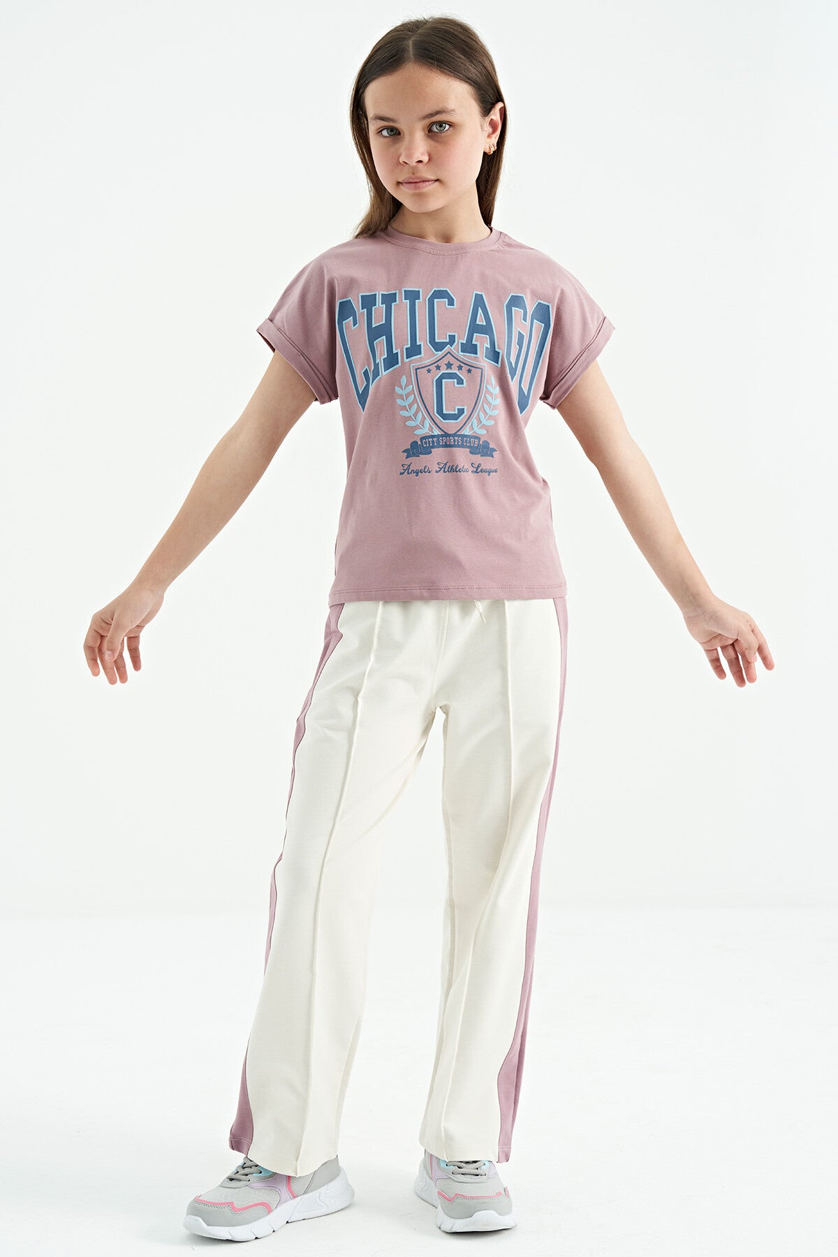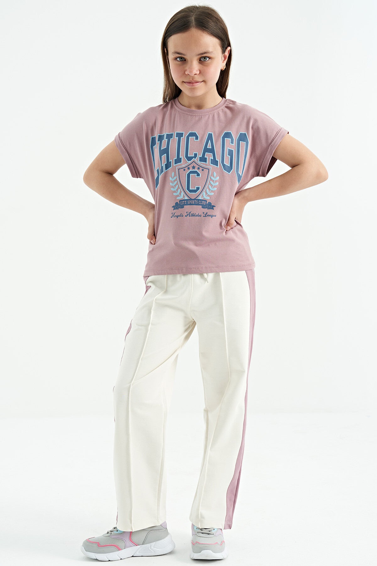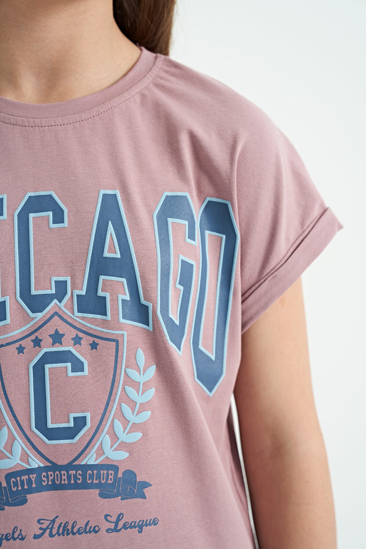 Dried Rose O Collar Low Shoulder Comfort Fit Short Sleeve Girls T-Shirt - 75128